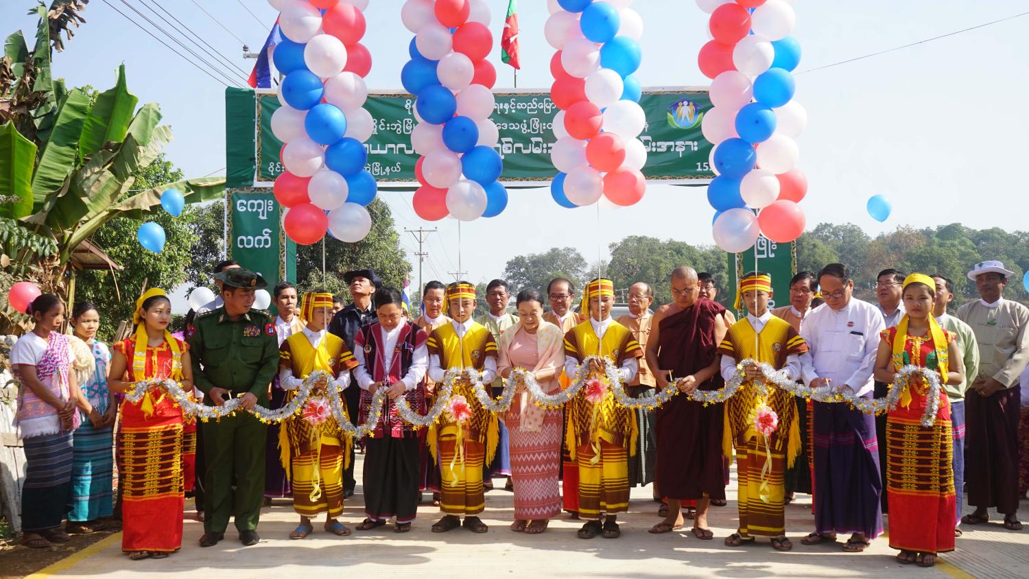 ထို့နောက် ဝိုင်းထော်ကျောင်းတိုက်ဆရာတော်ဘဒ္ဒန္တကုဏ္ဍလ၊ ပြည်နယ်ဝန်ကြီးချုပ်ဒေါ်နန်းခင်ထွေးမြင့်၊ ပြည်နယ် လွှတ်တော်ဥက္ကဋ္ဌဦးစောချစ်ခင်၊ လုံခြုံရေးနှင့်နယ်စပ်ရေးရာဝန်ကြီးဗိုလ်မှူးကြီးမျိုးမင်းနောင်၊ စိုက်ပျိုးရေး၊ မွေးမြူရေးနှင့် ဆည်မြောင်းဝန်ကြီးဦးစောမြင့်ဦးတို့က ကွန်ကရစ်လမ်းသစ်အား ဖဲကြိုးဖြတ် ဖွင့်လှစ်ပေးခဲ့ကြသည်။