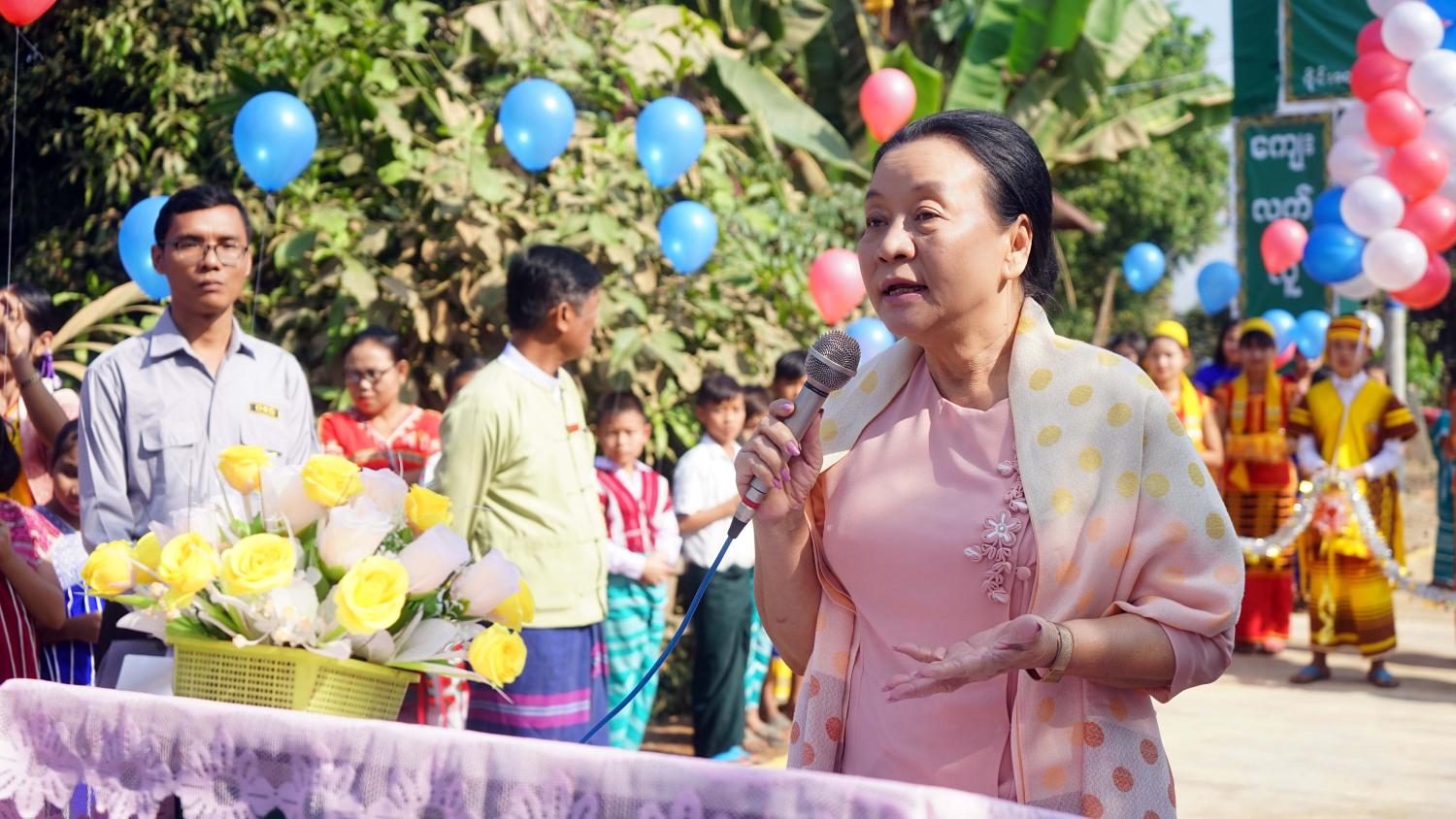 ကရင်ပြည်နယ်ဝန်ကြီးချုပ် ဒေါ်နန်းခင်ထွေးမြင့် ဝိုင်းထော်ကျေးရွာ ပြည်သာယာကွန်ကရစ်လမ်းသစ်အား ဖွင့်လှစ်