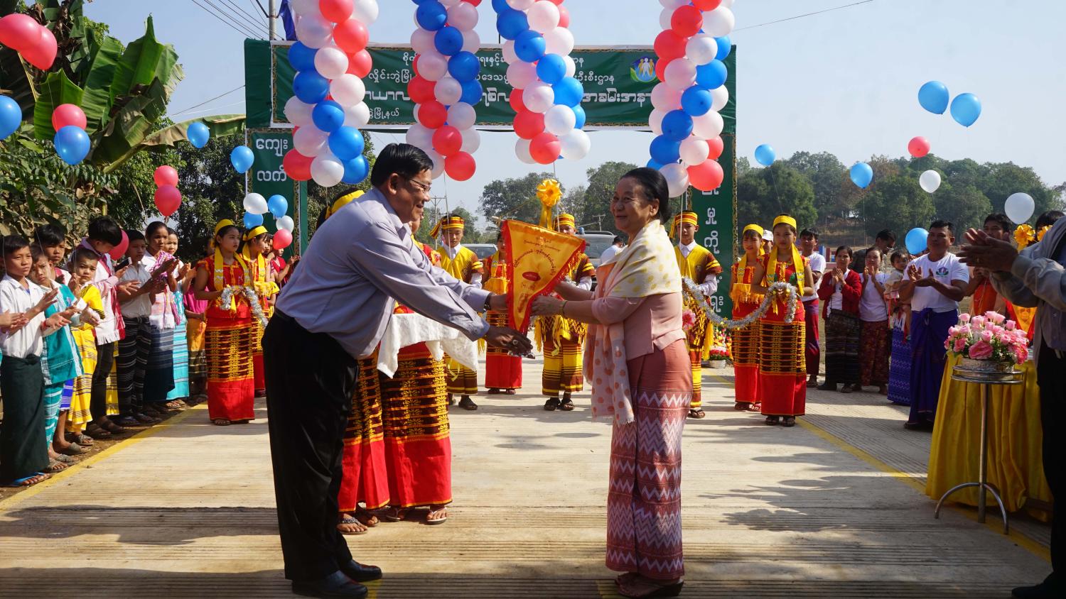 ရှေးဦးစွာ ကရင်ပြည်နယ်အစိုးရအဖွဲ့၊ ပြည်နယ်ဝန်ကြီးချုပ် ဒေါ်နန်းခင်ထွေးမြင့်က အဖွင့်အမှာစကားပြောကြားပြီး ဝိုင်းထော်ကျောင်းတိုက်ဆရာတော် ဘဒ္ဒန္တကုဏ္ဍလက ဩဝါဒကထာမြွတ်ကြားကာ ကျေးလက်ဒေသဖွံဖြိုးတိုးတက်ရေး ဦးစီးဌာန ပြည်နယ်ဦးစီးမှူးဦးထွန်းဇော်ချစ်က အထိမ်းအမှတ်အလံများပေးအပ်သည်။