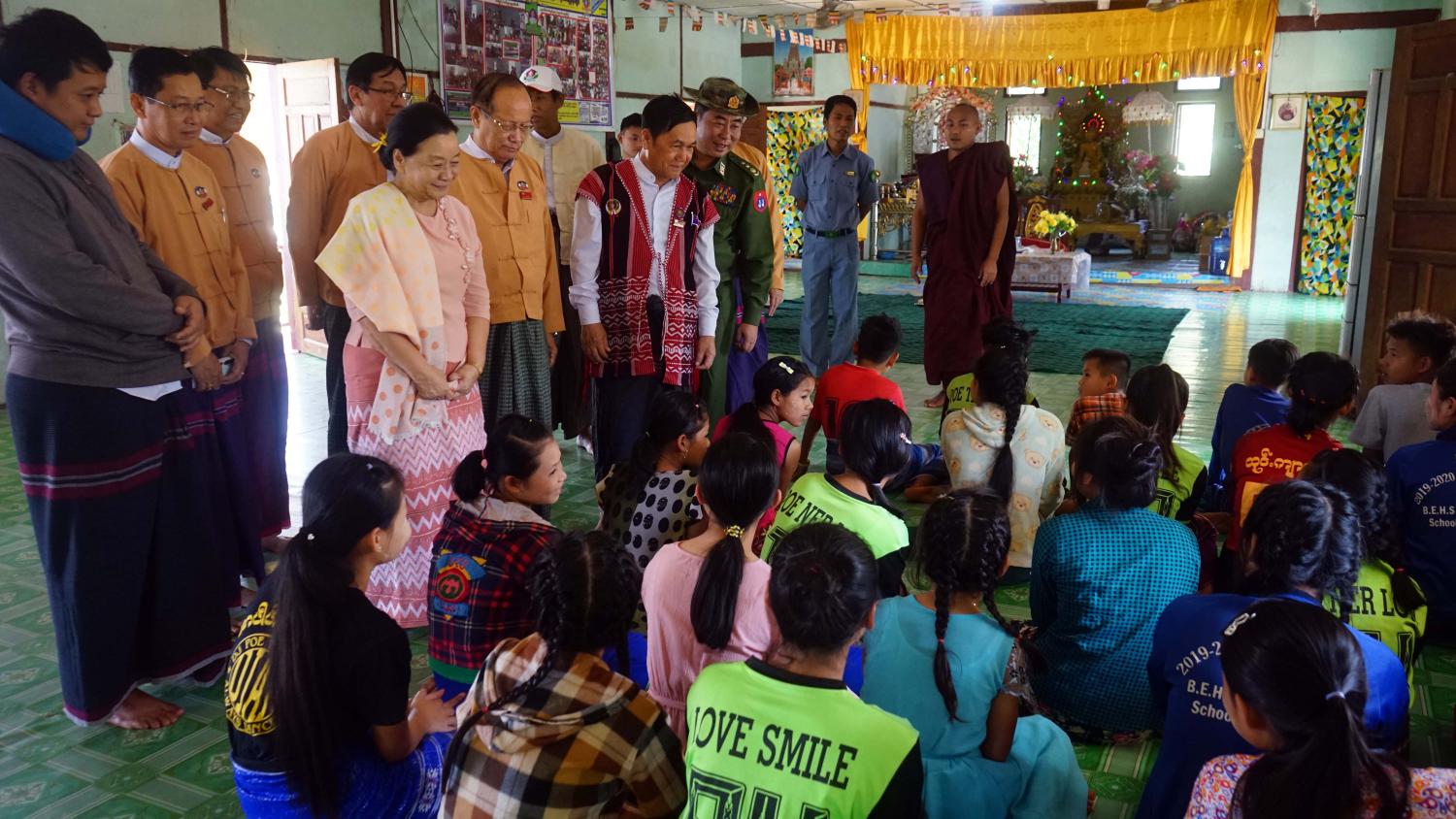 ထို့နောက် ပြည်နယ်ဝန်ကြီးချုပ်နှင့်တာဝန်ရှိသူများသည် ပိုင်ကျုံမြို့၊ အမှတ်(၂)ရပ်ကွက်ရှိ မြို့မသာသနာပြု ကျောင်းတိုက် ဆရာတော်ဘဒ္ဒန္တဓမ္မသီရိအား ဖူးမျှော်ကြည်ညို၍ ပရဟိတကျောင်းအတွက် ၂၀၁၉-၂၀၂၀ ဘဏ္ဍာရေးနှစ်၊ ဒုတိယ(၃)လပတ်၊ ဆန်ဘိုးထောက်ပံ့ငွေ တစ်အိတ်လျှင် ၃၀၀၀၀ နှုန်းဖြင့် ဆန်(၄၇)အိတ်အတွက် ငွေကျပ် ၁၄၁၀၀၀၀ိ/- (တစ်ဆယ့်လေးသိန်းတစ်သောင်းကျပ်)ကို ဆက်ကပ်လှူဒါန်းခဲ့ကာ အဆိုပါ ပရဟိတကျောင်းတွင် ပဥ္စမတန်းမှ နဝမတန်း ထိ ပညာသင်ကြားနေသော ကျောင်းသား၊ကျောင်းသူ(၆၀)ဦးတို့အား အားပေးစကားများပြောကြားခဲ့သည်။