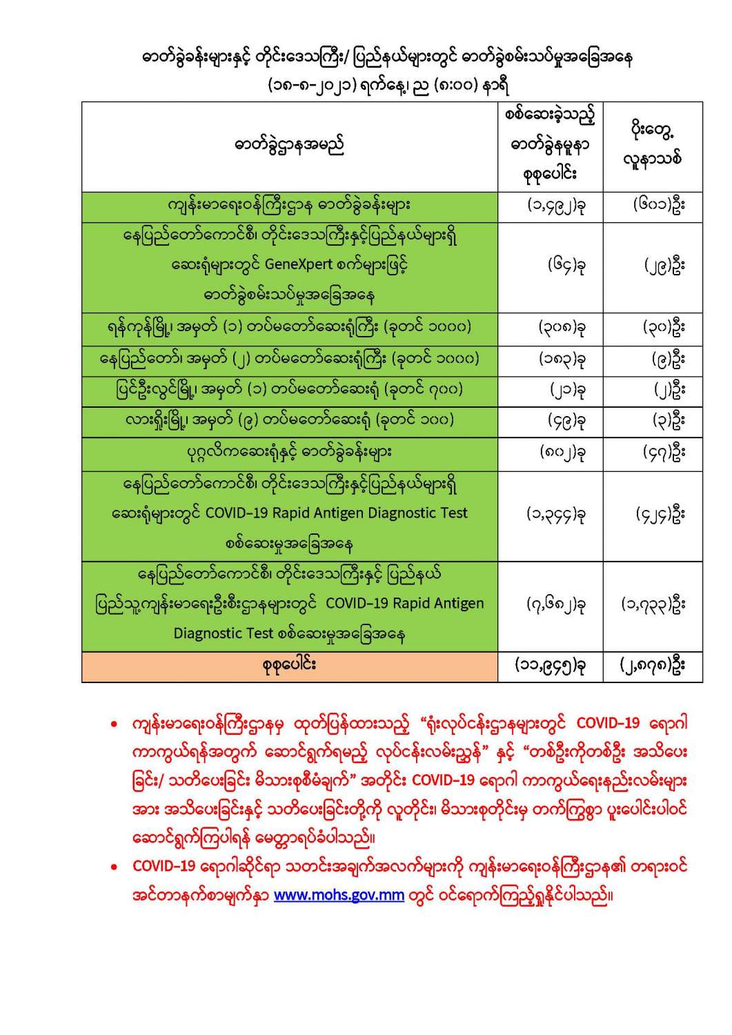 COVID-19 ရောဂါစောင့်ကြပ်ကြည့်ရှုမှုနှင့်ပတ်သက်၍သတင်းထုတ်ပြန်ခြင်း