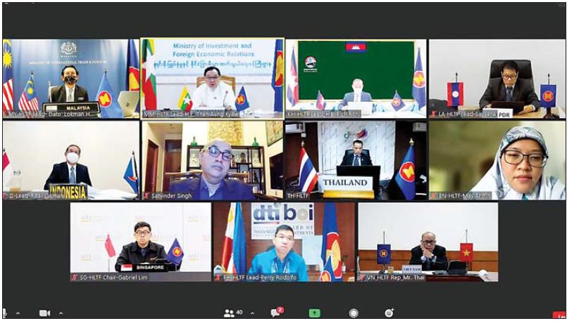 အကြိမ်(၄၀)မြောက် အာဆီယံစီးပွားရေး ပေါင်းစည်းမှုဆိုင်ရာ အဆင့်မြင့်လုပ်ငန်းအဖွဲ့ (40h Meeting of the High-level Task Force on ASEAN Economic Integration - HLTF-El) အစည်းအဝေးကို ယနေ့တွင် ဗီဒီယိုကွန်ဖရင့်စနစ်ဖြင့် ကျင်းပရာ ရင်းနှီးမြှုပ်နှံမှုနှင့် နိုင်ငံခြားစီးပွားဆက်သွယ်ရေး ဝန်ကြီး ဌာန ဒုတိယဝန်ကြီး ဦးသန်းအောင်ကျော်နှင့် တာဝန်ရှိသူများ ပါဝင်တက်ရောက်ကြသည်။