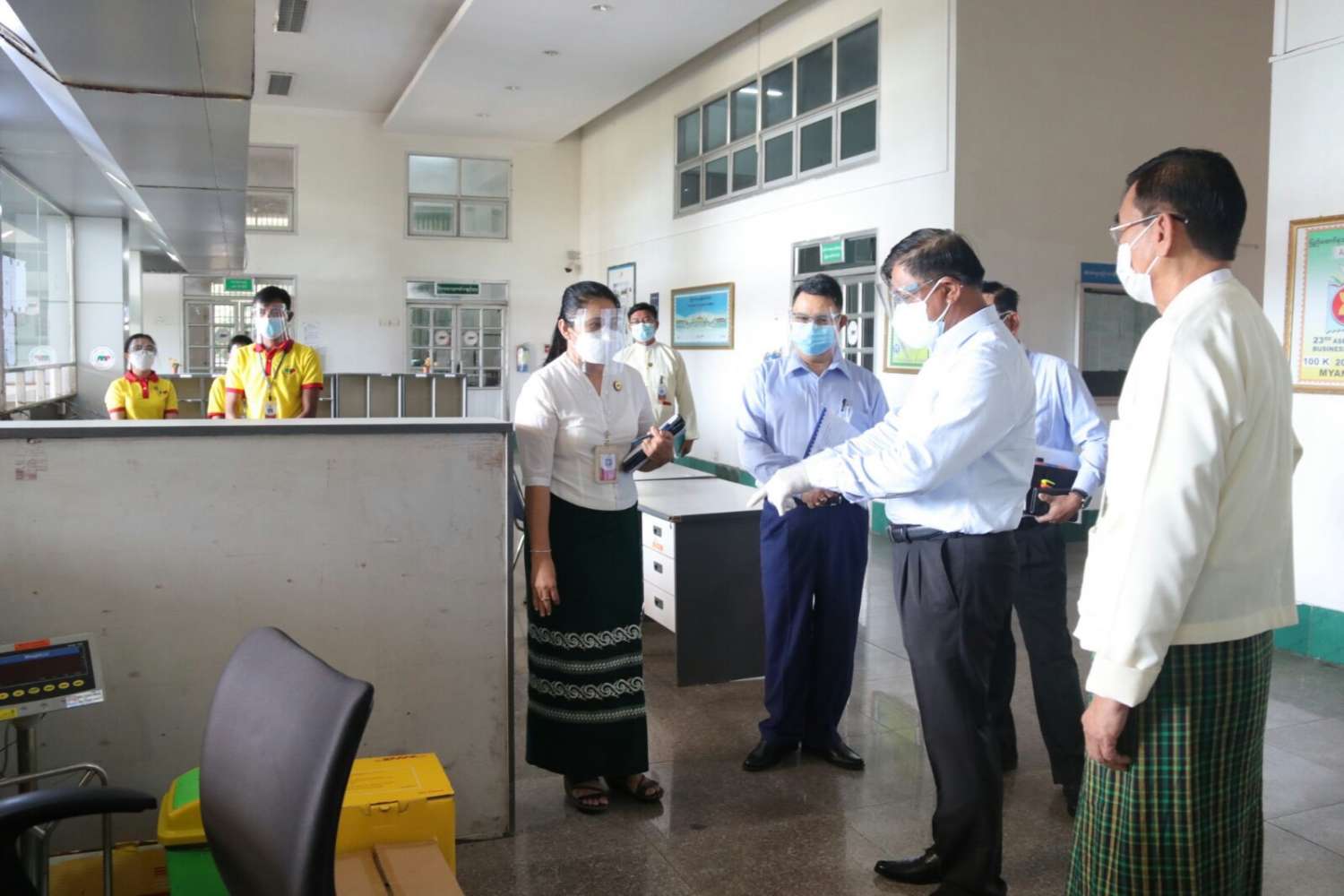 ယင်းနောက် ပြည်ထောင်စုဝန်ကြီးသည် မြန်မာ့စာတိုက် လုပ်ငန်း ပြခန်း၊ နေပြည်တော် ဗဟို စာတိုက်ကြီး ကောင်တာ၊ စာ/ပါဆယ်များ လုံခြုံရေးစစ်ဆေးနေသော X-Ray စက်ခန်းနှင့် စာတိုက် သေတ္တာထားရှိသည့် နေရာများကိုလှည့်လည် ကြည့်ရှု့စစ်ဆေးသည်။