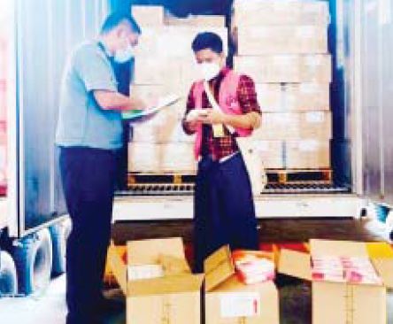 အကောက်ခွန်ဦးစီးဌာနအနေဖြင့် ကိုဗစ်-၁၉ ရောဂါ ကာကွယ်ထိန်းချုပ် ကုသရေးပစ္စည်းများကို လေကြောင်း၊ ဆိပ်ကမ်း၊ နယ်စပ်ဂိတ်အသီး သီးမှ ရုံးပိတ်ရက်ရှည်ကာလအတွင်း နေ့စဉ် ရုံးပိတ်ရက်မရှိလွယ်ကူချောမွေ့စွာ စစ်ဆေးထုတ်ပေးလျက်ရှိရာ ဩဂုတ် ၁၉ ရက်တွင် ရန်ကုန် အပြည်ပြည်ဆိုင်ရာလေဆိပ်၌ ကုမ္ပဏီ ၂၅ ခုမှ Favipiravir Tablets ၁၈၈၁ ခု၊ Test Kit ၆၇၆၀၊ LCD (Patient Monitor) ၃၀၊ Oximeter ၁၆၆၃ ခု၊ အိမ်သုံးအောက်ဆီဂျင်စက် ၇၃၉ ခု၊ Oxygen Mask ၅၀၀၀၊ Oxygen Sensor ၃၀၊ ရန်ကုန်ဆိပ်ကမ်းများမှ ကိုဗစ်-၁၉ ရောဂါကာကွယ် ကုသဆေးနှင့် အခြားဆေးမျိုးစုံ ၅၄၇၀၅ ဒသမ ၆၉ ကီလိုဂရမ်၊ နယ်စပ် | (မူဆယ်၊ ချင်းရွှေဟော်၊ မြဝတီ၊ တာချီလိတ်)တွင် ကုမ္ပဏီ ၂၃ ခုမှ | Oxygen Cylinder ၆၅၂၅ ခု၊ အိမ်သုံးအောက်ဆီဂျင်စက် ၅၉၆ ခု၊နှာခေါင်းစည်း ၆၅၅၃၈ ခု၊ Liquid Oxygen ၁၅၀၈၀ ဒသမ ၁ ကီလိုဂရမ်၊ Liquid Oxygen တန် ၂၀၊ Flow Meter ၆၃၀၀ ခု၊ တစ်ကိုယ်ရေသုံး ကာကွယ်ရေးဝတ်စုံ ၂၆၈၅၀၊ Oxygen Mask ၁၅၀၀၊ Trolley ၃၅၀၊ Disposable Syringe ၂၂၁၆၀၊ မျက်နှာအကာ ၁၀၂ ကီလိုဂရမ်၊ Goggle ၂၈၀ တို့ကို ထုတ်ပေးခဲ့ကြောင်း သိရသည်။