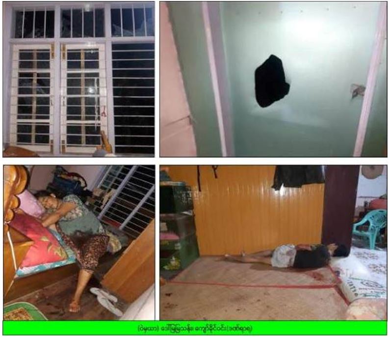 စစ်ကိုင်းတိုင်းဒေသကြီး၊ ကလေးမြို့နယ်၌ လက်နက်ကိုင်အကြမ်းဖက်သောင်းကျန်းသူများက နေအိမ်အတွင်းသို့ ဖျက်ဆီးဝင်ရောက်ကာ အိမ်အတွင်း အိပ်ပျော်နေသည့် အမျိုးသားတစ်ဦးနှင့် အမျိုးသမီးတစ်ဦးတို့အား ဓားဖြင့်ထိုးကာ အမျိုးသမီးဝတ်ဆင်ထားသော ရွှေလက်ကောက် ၅ ကွင်းအား လုယက်ယူဆောင်သွားကြောင်း သိရသည်။
