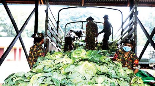 ကိုဗစ်-၁၉ ရောဂါ ဖြစ်ပွားမှုကြောင့် လမ်းပန်းဆက်သွယ်ရေး ခက်ခဲမှုများဖြစ်ပေါ်ပြီး ဈေးကွက်အတွင်းရောင်းချရန် အခက်အခဲဖြစ်နေသည့် ဒေသခံတိုင်းရင်းသား ပြည်သူများ၏ သီးနှံစိုက်ခင်းများသို့ အရှေ့မြောက်တိုင်း စစ်ဌာနချုပ်မှ နယ်မြေခံ တပ်မတော်သားများက ဝယ်ယူပေးလျက်ရှိရာ ဩဂုတ် ၂၄ ရက်တွင် ရှမ်းပြည်နယ် (မြောက်ပိုင်း)၊ နောင်ချိုမြို့နယ်၊ ယာပြင်ကျေးရွာရှိ ဒေသခံပြည်သူများ၏ သီးနှံစိုက်ခင်းများမှ ဂေါ်ဖီထုပ် ၂၀၀၀ ထုပ်နှင့် ပန်းဂေါ်ဖီ ၂၀၀၀ ထုပ်တို့ကို နယ်မြေခံတပ်မတော်သားများက သွားရောက်ဝယ်ယူခဲ့ပြီး ယနေ့တွင် လားရှိုးမြို့၊ သိန်းနီမြို့နှင့် နမ့်ပေါင်မြို့များရှိ တပ်မတော်သားမိသားစုဝင်များနှင့် ဌာနဆိုင်ရာဝန်ထမ်းများအား ထောက်ပံ့ ပေးအပ်ခဲ့ကြောင်း သတင်းရရှိသည်။