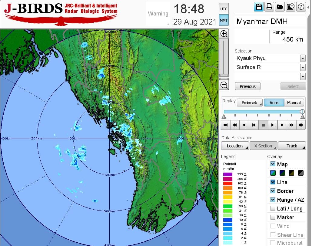 ဘင်္ဂလားပင်လယ်အော် အခြေအနေ။ ယနေ့မြန်မာစံတော်ချိန် (၁၈:၃၀)နာရီအချိန် တိုင်းထွာချက်များအရ ဘင်္ဂလားပင်လယ်အော် အနောက်မြောက်ပိုင်းနှင့် ယင်းနှင့် ဆက်စပ် လျက်ရှိသော ဘင်္ဂလားပင်လယ်အော် အနောက်အလယ်ပိုင်း (အင်ဒရာပရာဒေ့ရ် မြောက်ပိုင်း ကမ်းလွန်-ဩရိဿတောင်ပိုင်း ကမ်းခြေ)တို့တွင် ဖြစ်ပေါ်နေသော လေဖိအားနည်းရပ်ဝန်းသည် အိန္ဒိယနိုင်ငံ၊ အင်ဒရာပရာဒေ့ရ်မြောက်ပိုင်းကမ်းလွန်နှင့် ဩရိဿတောင်ပိုင်းကမ်းခြေတို့ကို ဖြတ်ကျော်ဝင်ရောက်ခဲ့ပြီး ဖြစ်ပါသည်။ ကပ္ပလီပင်လယ်ပြင်နှင့် ဘင်္ဂလားပင်လယ်အော်တို့တွင် မုတ်သုံလေ အားနည်းနေပါသည်။