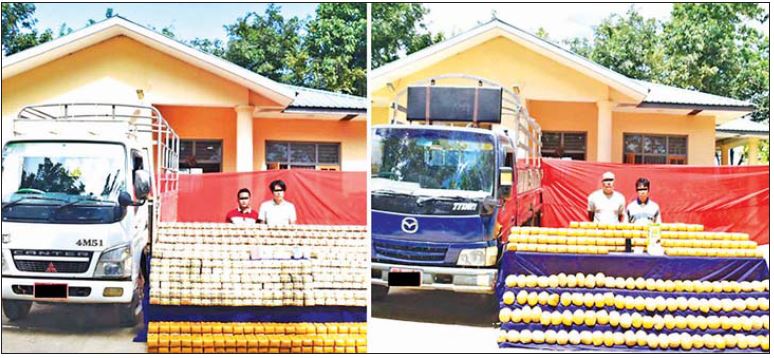 ဆက်လက်၍ နောက်မှလိုက်ပါလာသည့် မျိုးချစ် (၅၀ နှစ်) မောင်းနှင်ပြီး ထွန်းနိုင်(၃၁ နှစ်) လိုက်လာ သည့် ခြောက်ဘီးယာဉ်ကို ရှာဖွေရာ စိတ်ကြွရူးသွပ် ဆေးပြား ၂၁ သိန်း၊ အိုက်စ် (မက်သ်အဖက်တမင်း) ၁ ကီလို၊ ဘိန်းစိမ်း ၁၂၄ ဒသမ ၈ ကီလိုတို့ကို ရှာဖွေတွေ့ရှိသဖြင့် သိမ်းဆည်းရမိ မူးယစ်ဆေးဝါး စုစုပေါင်းတန်ဖိုးမှာ ငွေကျပ် ၄ ဒသမ ၅ ဘီလီယံကျော် ဖြစ်ပြီး ၎င်းတို့အား မူးယစ်ဆေးဝါးနှင့် စိတ်ကို ပြောင်းလဲစေသော ဆေးဝါးများဆိုင်ရာဥပဒေအရ အရေးယူထားရှိကြောင်းနှင့် ကွင်းဆက်ပြစ်မှုကျူး လွန်သူများအား စစ်ဆေးဖော်ထုတ်လျက်ရှိကြောင်း သိရသည်။