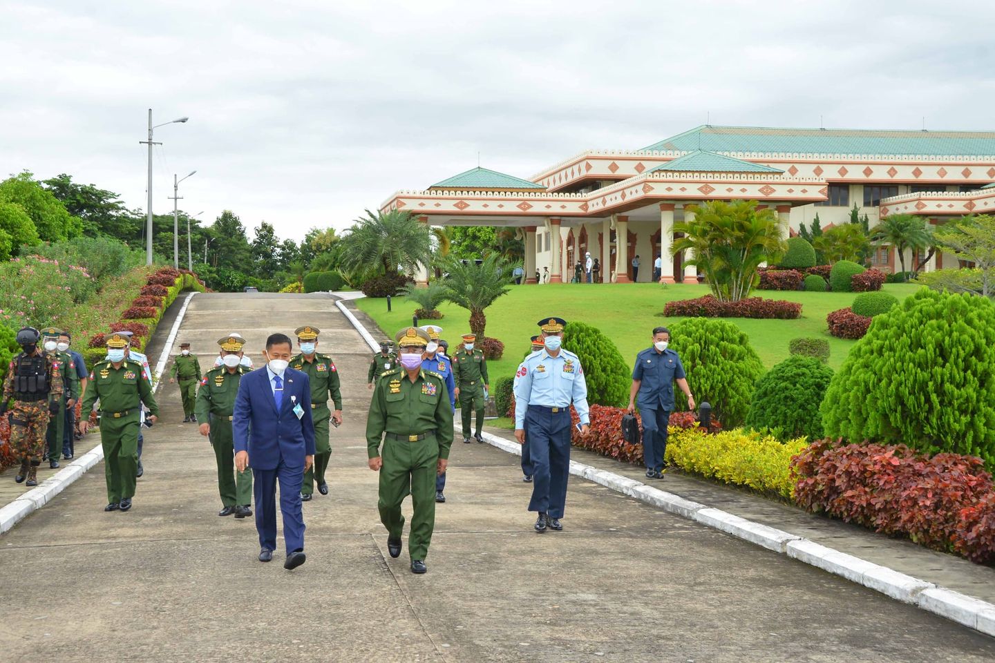 နိုင်ငံတော်စီမံအုပ်ချုပ်ရေးကောင်စီဥက္ကဋ္ဌ၊ တပ်မတော်ကာကွယ်ရေးဦးစီးချုပ် ဗိုလ်ချုပ်မှူးကြီး မင်းအောင်လှိုင် ရုရှားဖက်ဒရေးရှင်းနိုင်ငံတွင် ကျင်းပပြုလုပ်လျက်ရှိသည့် International Army Games-2021 ပိတ်ပွဲအခမ်းအနားသို့ တက်ရောက်ရန် လေကြောင်းခရီးဖြင့် ထွက်ခွာမည့် နိုင်ငံတော်စီမံအုပ်ချုပ်ရေးကောင်စီ ဒုတိယဥက္ကဋ္ဌ၊ ဒုတိယ တပ်မတော်ကာကွယ်ရေးဦးစီးချုပ် ကာကွယ်ရေးဦးစီးချုပ်(ကြည်း) ဒုတိယဗိုလ်ချုပ်မှူးကြီး စိုးဝင်း နှင့် ကိုယ်စားလှယ်အဖွဲ့အား ပို့ဆောင်နှုတ်ဆက်