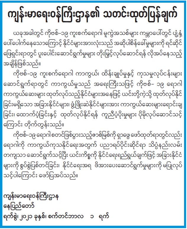 ကျန်းမာရေးဝန်ကြီးဌာန၏ သတင်းထုတ်ပြန်ချက်