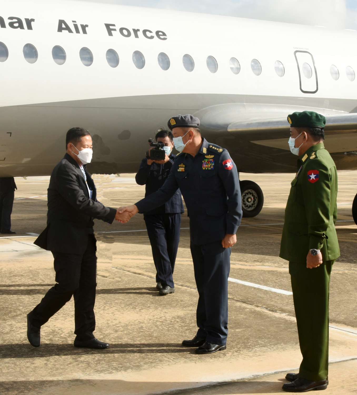 ထို့နောက် နိုင်ငံတော်စီမံအုပ်ချုပ်ရေးကောင်စီ ဒုတိယဥက္ကဋ္ဌ၊ ဒုတိယတပ်မတော် ကာကွယ်ရေးဦးစီးချုပ် ကာကွယ်ရေးဦးစီးချုပ် (ကြည်း) ဉီးဆောင်သည့် ကိုယ်စားလှယ်အဖွဲ့သည် မြန်မာစံတော်ချိန် ယနေ့နံနက် ၈ နာရီခန့်တွင် နေပြည်တော် တပ်မတော်လေဆိပ်သို့ ပြန်လည်ရောက်ရှိကြရာ နိုင်ငံတော်စီမံအုပ်ချုပ်ရေးကောင်စီဝင်၊ ကာကွယ်ရေးဉီးစီးချုပ်(လေ) ဗိုလ်ချုပ်ကြီး မောင်မောင်ကျော်၊ ညှိနှိုင်းကွပ်ကဲ ရေးမှူး(ကြည်း၊ ရေ၊ လေ) ဗိုလ်ချုပ်ကြီး မောင်မောင်အေးနှင့် ကာကွယ်ရေးဦးစီးချုပ်ရုံး (ကြည်း၊ ရေ၊ လေ) မှ တပ်မတော်အရာရှိကြီးများ၊ နေပြည်တော်တိုင်း စစ်ဌာနချုပ် တိုင်းမှူး၊ မြန်မာနိုင်ငံဆိုင်ရာ ရုရှားဖက်ဒရေးရှင်းနိုင်ငံသံရုံးမှ သံရုံး ဒုတိယအကြီးအကဲ Mr. Pavel Klabukov နှင့် တာဝန်ရှိသူများက လေဆိပ်၌ ကြိုဆို နှုတ်ဆက်ခဲ့ကြသည်။