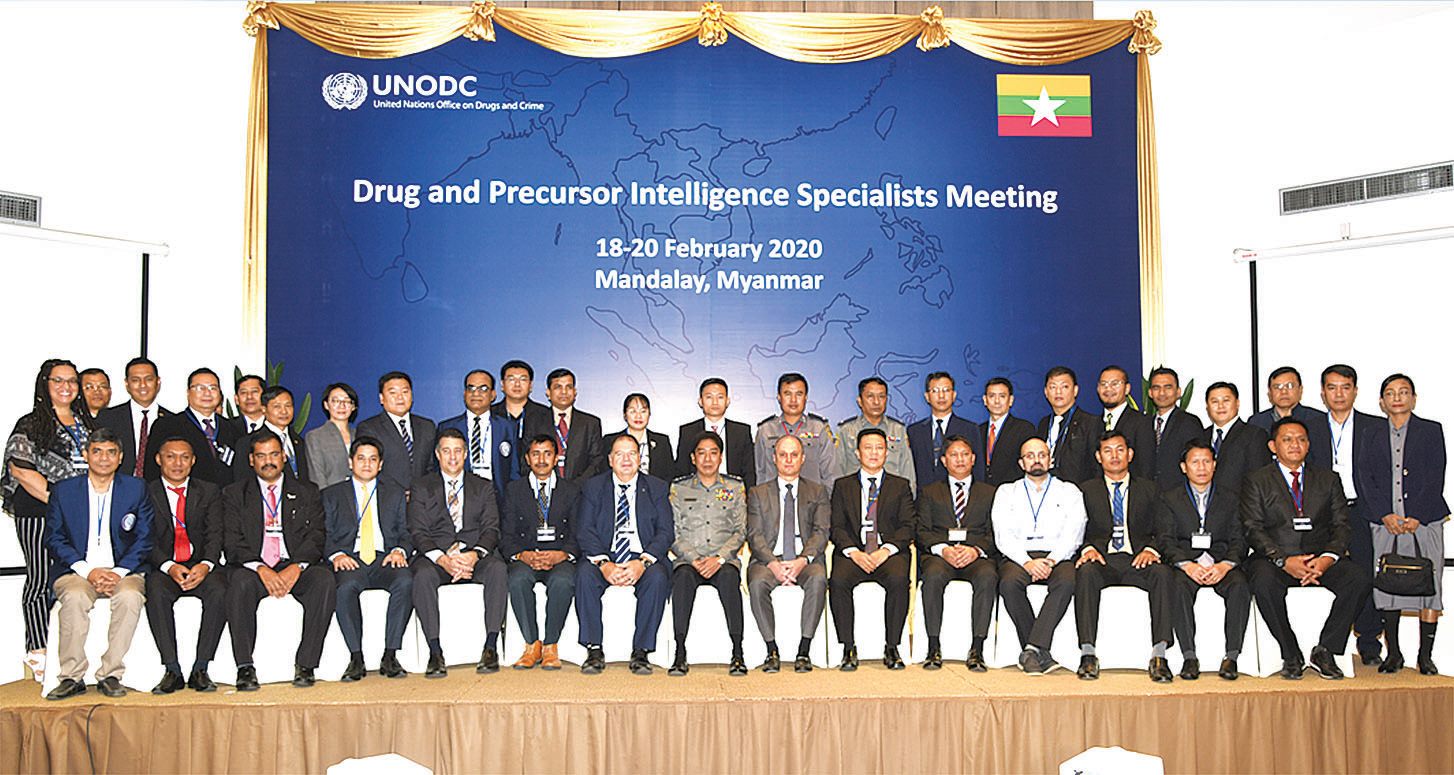 အာဆီယံနိုင်ငံများ၏ မူးယစ်ဆေးဝါးနှင့် ပရီကာဆာစုံစမ်းထောက်လှမ်း ရေးကျွမ်းကျင်သူများ အစည်းအဝေးကို ယနေ့ နံနက်ပိုင်းက မန္တလေးမြို့ Mercure Hotel ၌ ကျင်းပရာ အခမ်းအနားသို့ မြန်မာနိုင်ငံ မူးယစ်ဆေးဝါးနှင့် စိတ်ကိုပြောင်းလဲစေသောဆေးဝါးများ အန္တရာယ် တားဆီးကာကွယ်ရေးဗဟိုအဖွဲ့ အတွင်းရေးမှူး၊ မြန်မာနိုင်ငံရဲတပ်ဖွဲ့ရဲချုပ် ဒုတိယရဲဗိုလ်ချုပ်ကြီး အောင်ဝင်းဦးနှင့် ကုလသမဂ္ဂ မူးယစ် ဆေးဝါးနှင့် မှုခင်းဆိုင်ရာရုံး(UNODC)၏ အရှေ့တောင်အာရှနှင့် ပစိဖိတ်ဒေသ Precursor Programme Ma-nager, Mr. Reiner Pungs တို့က အဖွင့်အမှာစကား ပြောကြားသည်။