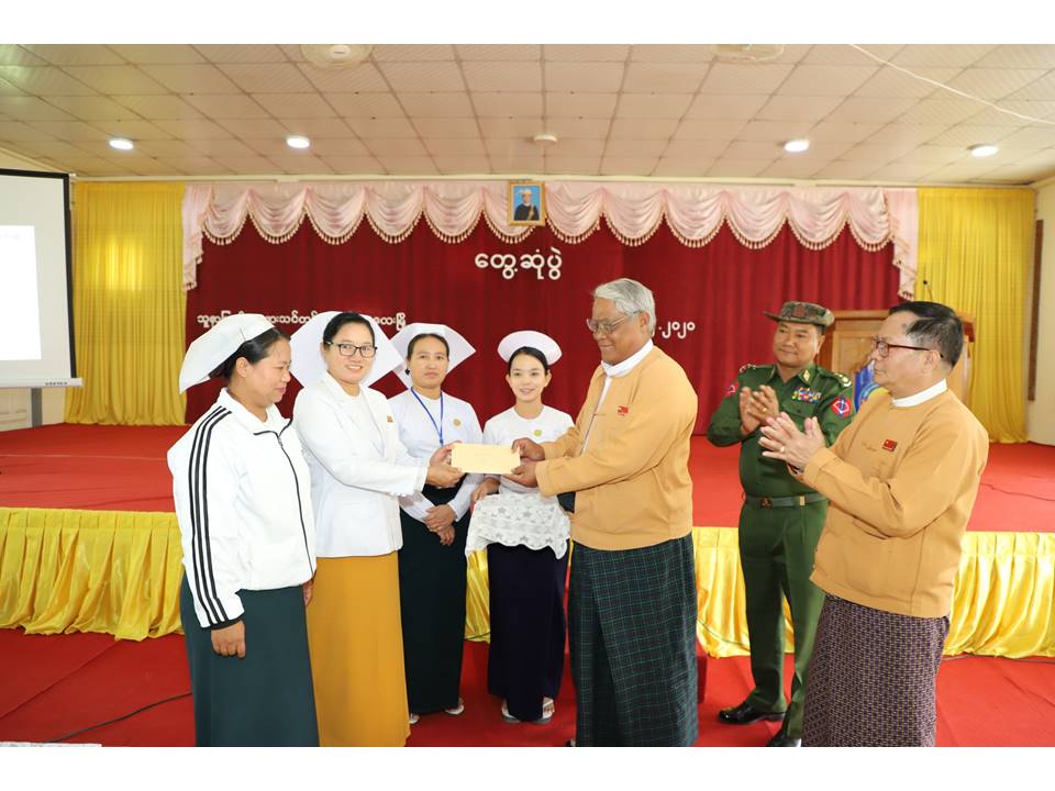 ထို့နောက် အဆိုပါသင်တန်းကျောင်းနှင့် သင်တန်းသားသင်တန်းသူများအတွက် ထောက်ပံ့ငွေများကို အသီးသီးပေးအပ်ရာ ကျောင်းအုပ်ဆရာမကြီးနှင့် တာဝန်ရှိသူများက လက်ခံရယူခဲ့ကြပြီး သင်တန်းသူများကို တိုင်းဒေသကြီးဝန်ကြီးချုပ်က ရင်းရင်းနှီးနှီးလိုက်လံနှုတ်ဆက်ခဲ့သည်။