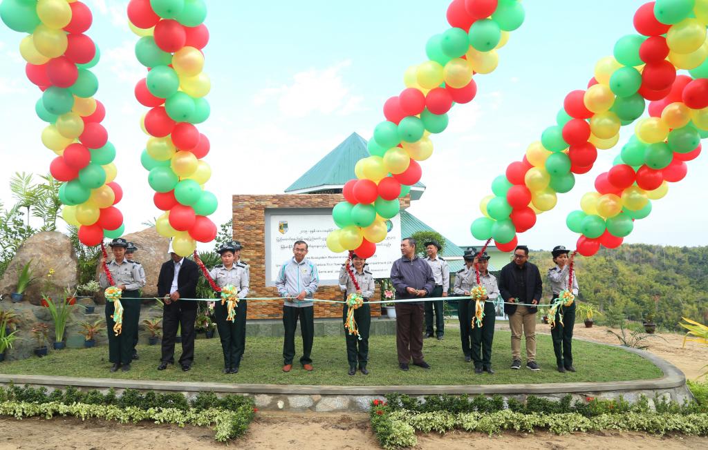 အခမ်းအနားတွင် သယံဇာတနှင့် သဘာဝပတ်ဝန်းကျင် ထိန်းသိမ်းရေးဝန်ကြီးဌာန ပြည်ထောင်စုဝန်ကြီး၊ ဒုတိယဝန်ကြီး၊ ဥက္ကဋ္ဌ၊ မြန်မာနိုင်ငံ ကျောက်မျက်ရတနာ လုပ်ငန်းရှင်များအသင်း၊ နေပြည်တော်ကောင်စီဝင်တို့မှ ဖဲကြိုးဖြတ်ဖွင့်လှစ်ပေးပြီး ဂေဟစနစ် ဖြည့်တင်းရေးစိုက်ခင်း ဧက ၁၀၀ ကမ္ဗည်းကျောက်စာအား အမွှေးနံ့သာရည်ဖြင့် ဖျန်းပက် ဖွင့်လှစ်ပေးသည်။