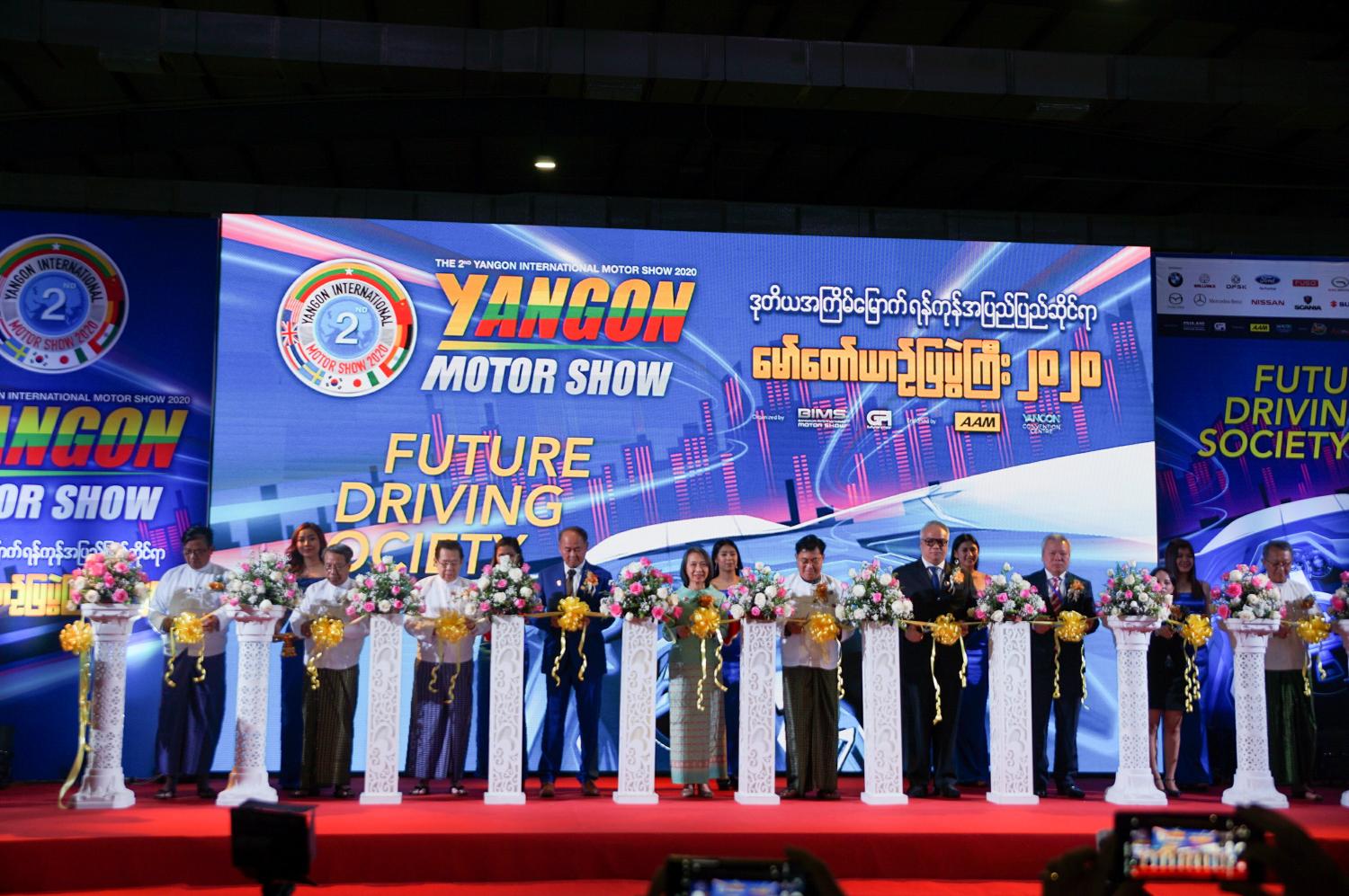 ဆက်လက်၍ ဒုတိယအကြိမ်မြောက် ရန်ကုန်အပြည်ပြည်ဆိုင်ရာကားပြပွဲကို ရန်ကုန်တိုင်းဒေသကြီးအစိုးရအဖွဲ့ ရခိုင်တိုင်းရင်းသားရေးရာဝန်ကြီး ဦးဇော်အေးမောင်၊ မြန်မာနိုင်ငံကုန်သည်များနှင့်စက်မှုလက်မှုလုပ်ငန်းရှင်များအသင်းချုပ် ဥက္ကဋ္ဌ ဦးဇော်မင်းဝင်း၊ မြန်မာနိုင်ငံ မော်တော်ယာဉ် အသင်း ဥက္ကဋ္ဌ ဦးအောင်ဝင်းနှင့် တာဝန်ရှိသူများက၊ ကားပြပွဲကို ဖဲကြိုးဖြတ်ဖွင့်လှစ်ပေးကြသည်။