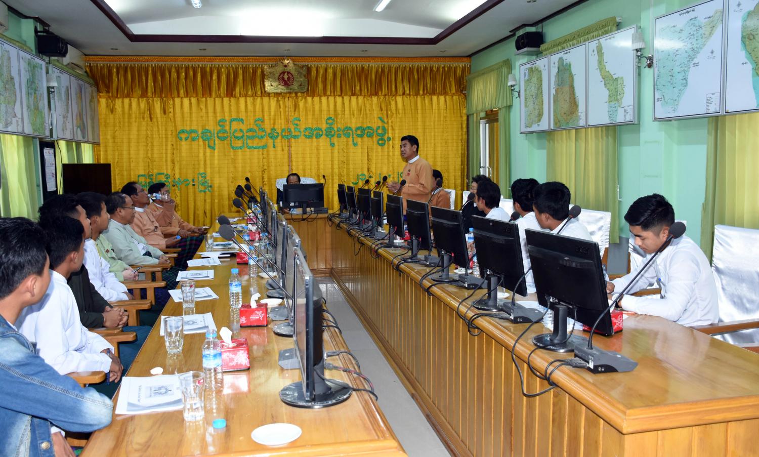 ကချင်ပြည်နယ်အတွင်းရှိ တက္ကသိုလ်၊ ကောလိပ်ကျောင်းများမှ ကျောင်းသား/သူများ၏ စွမ်းရည် ပြသပွဲ (Student’s Talent Show Kachin State -2020) ကို ကျင်းပပြုလုပ်နိုင်ရေးအတွက် ပွဲကျင်းပရေး ဦးစီးကော်မတီအဖွဲ့ဝင် ကျောင်းသားသမဂ္ဂအဖွဲ့ဝင် ကျောင်းသား/သူများ၏ တင်ပြမှုအပေါ် ကချင် ပြည်နယ်အစိုးရအဖွဲ့မှ ပံ့ပိုးကူညီဆောင်ရွက်ပေးမည်ဖြစ်ကြောင်း ယမန်နေ့ မွန်းလွဲပိုင်းတွင် အစိုးရ အဖွဲ့ရုံး အစည်းအဝေးခန်းမ၌ ကျင်းပပြုလုပ်သည့် ညှိနှိုင်းအစည်းအဝေးမှ သိရှိရသည်။