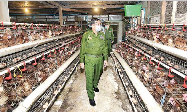 ထို့နောက် နိုင်ငံတော်စီမံအုပ်ချုပ်ရေးကောင်စီဥက္ကဋ္ဌ တပ်မတော်ကာကွယ်ရေး ဦးစီးချုပ်နှင့် အဖွဲ့ဝင်များသည် ဘက်စုံစိုက်ပျိုးမွေးမြူရေးစခန်းအတွင်း ငါးများမွေးမြူ ထားရှိမှုနှင့် ဥစားကြက်များ မွေးမြူထားမှုတို့အား လှည့်လည်ကြည့်ရှု စစ်ဆေးခဲ့ပြီး လိုအပ်သည်များ လမ်းညွှန်မှာကြားခဲ့ကြောင်း သတင်းရရှိသည်။