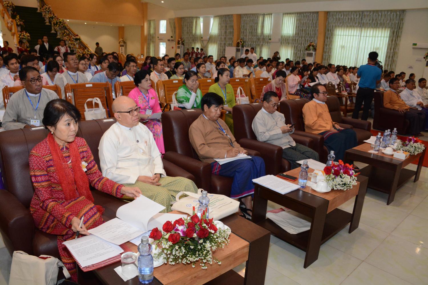 ရှေးဦးစွာ ပညာရေးဝန်ကြီးဌာန ပြည်ထောင်စုဝန်ကြီး ဒေါက်တာမျိုးသိမ်းကြီးက ယနေ့ကျင်းပသည့် နှီးနှောဖလှယ်ပွဲသည် ပုဂ္ဂလိကကဏ္ဍ လူသားအရင်းအမြစ် ဖွံ့ဖြိုးတိုးတက်ရေးအတွက် အစိုးရနှင့်ပုဂ္ဂလိကကဏ္ဍ ပူးပေါင်းဆောင်ရွက်မည့် အစီအစဉ်များချမှတ် နိုင်ရေး၊ ဒေသတွင်း လုပ်ငန်းများတွင် လိုအပ်လျက်ရှိသော လက်တွေ့ကျွမ်းကျင်မှု (Soft Skill & Hard Skill) လိုအပ်ချက်များ ဖော်ထုတ်နိုင်ရေး၊ ဒေသမှ တောင်းဆိုမှုအများဆုံးဖြစ်သည့် သင်တန်းအမျိုးအစားတစ်မျိုး စတင်ဖွင့်လှစ်နိုင်ရေး၊ ဖွင့်လှစ်မည့် သင်တန်းများကို ရေရှည် တည်တံ့ ဖွံ့ဖြိုးနိုင်မည့် အစီအစဉ်များ ဖော်ထုတ်နိုင်ရေးအတွက် ရည်ရွယ် ကျင်းပခြင်းဖြစ်ပါကြောင်း၊ ပညာရေးဝန်ကြီးဌာနအနေဖြင့် နည်းပညာ၊ သက်မွေးပညာနှင့် လေ့ကျင့်ရေးကဏ္ဍ (Technical and Vocational Education and Training–TVET) ကို တာဝန်ယူ၍ ပုဂ္ဂလိကကဏ္ဍ လူသားအရင်းအမြစ် ဖွံ့ဖြိုးတိုးတက်ရေး ပူးပေါင်းအကောင်အထည်ဖော် ဆောင်ရွက်ပေးလျက်ရှိပါကြောင်း၊ ပုဂ္ဂလိကကဏ္ဍ ဖွံ့ဖြိုး တိုးတက်ရေး၊ အသေးစား၊ အငယ်စားနှင့် အလတ်စား စီးပွားရေးလုပ်ငန်းများ ဖွံ့ဖြိုးတိုးတက်ရေးအတွက် လိုအပ်သည့် ကျွမ်းကျင်သူများ ရရှိရန် လူသားအရင်းအမြစ် ဖွံ့ဖြိုးတိုးတက်ရေးကို အလေးထားဆောင်ရွက်လျက်ရှိပါ ကြောင်း။