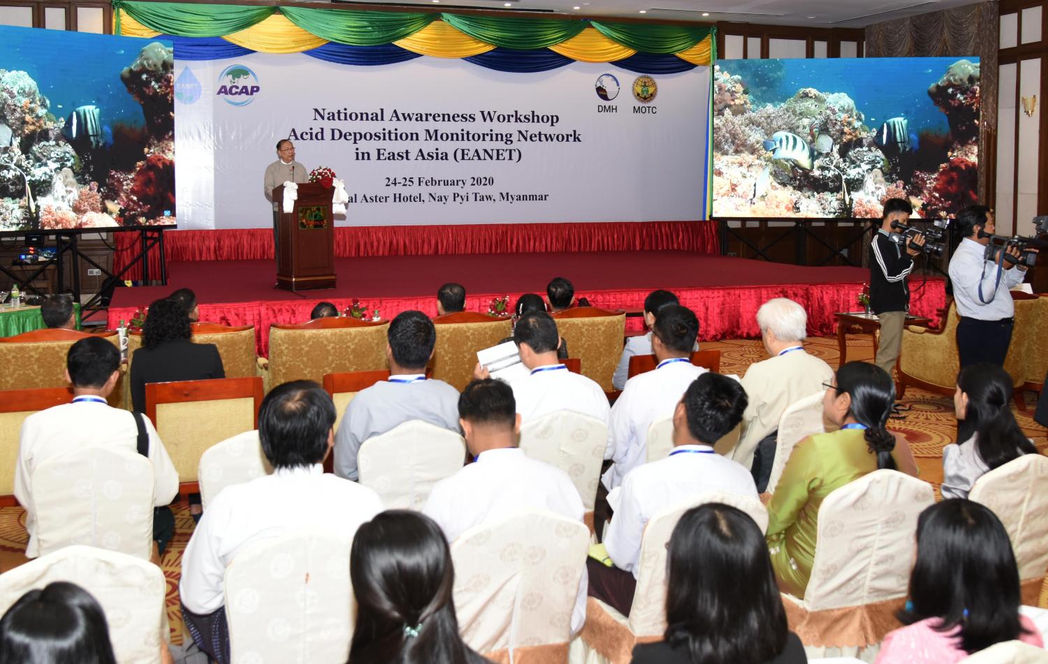 ပို့ဆောင်ရေးနှင့်ဆက်သွယ်ရေးဝန်ကြီးဌာန၊ မိုးလေဝသနှင့်ဇလဗေဒညွှန်ကြားမှုဦးစီးဌာနနှင့် အရှေ့အာရှ အက်ဆစ်ဖြစ်ထွန်းမှု စောင့်ကြည့်လေ့လာရေး ကွန်ရက် (EANET)တို့ ပူးပေါင်းပြီး  “အမျိုးသားအဆင့် အက်ဆစ် ဖြစ်ထွန်းမှုနှင့် လေထုညစ်ညမ်းမှု စောင့်ကြည့်လေ့လာခြင်းဆိုင်ရာ လူထုအသိပညာပေး အလုပ်ရုံ ဆွေးနွေးပွဲ” အခမ်းအနားကို ယနေ့နံနက် ၉ နာရီခွဲတွင် နေပြည်တော်ရှိ Hotel Royal Aster ၌ ကျင်းပသည်။