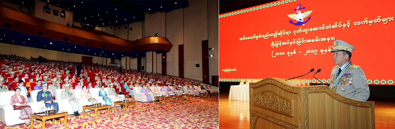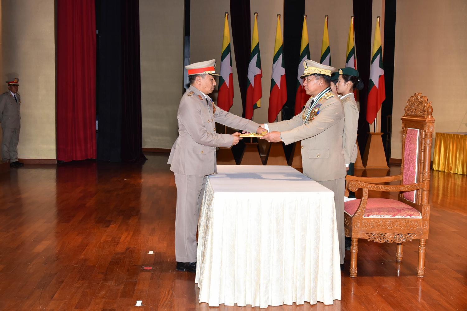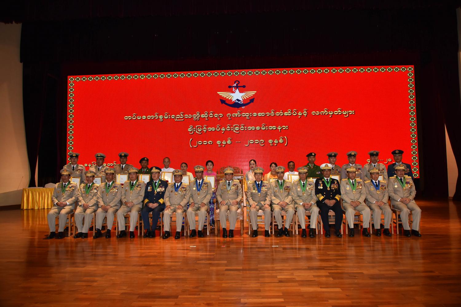 ၂၀၁၈ ခုနှစ်နှင့် ၂၀၁၉ ခုနှစ်တို့တွင် နိုင်ငံနှင့်ပြည်သူအတွက် အသက်ကို ပဓာနမထား၊ စွန့်လွှတ်စွန့်စားစွာ တာဝန်ထမ်းဆောင်ကြ သူများအား တပ်မတော်စွမ်းရည်သတ္တိဆိုင်ရာ ဂုဏ်ထူးဆောင် တံဆိပ်နှင့် လက်မှတ်များ ချီးမြှင့်အပ်နှင်းခြင်း အခမ်းအနားကို ယနေ့မွန်းလွဲပိုင်းတွင် နေပြည်တော်ရှိ ဇေယျာသီရိဗိမာန်၌ ကျင်းပရာ တပ်မတော်ကာကွယ်ရေးဦးစီးချုပ် ဗိုလ်ချုပ်မှူးကြီး မဟာသရေစည်သူ မင်းအောင်လှိုင် တက်ရောက်၍ ဂုဏ်ပြုအမှာစကား ပြောကြားပြီး ဂုဏ်ထူးဆောင်တံဆိပ်နှင့် လက်မှတ်များ ချီးမြှင့်အပ်နှင်းသည်။