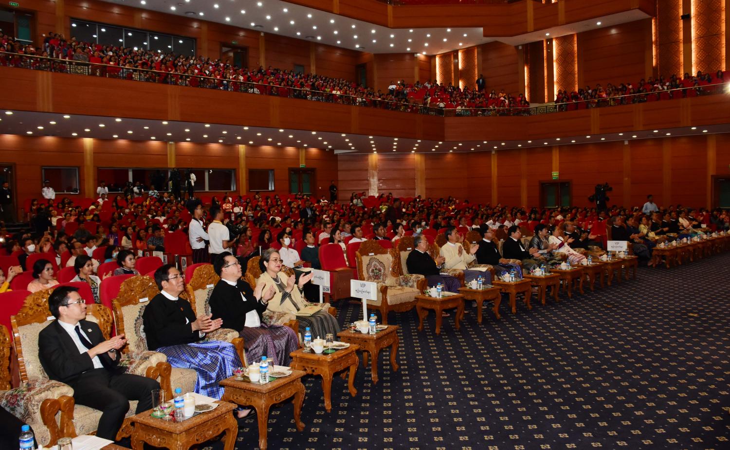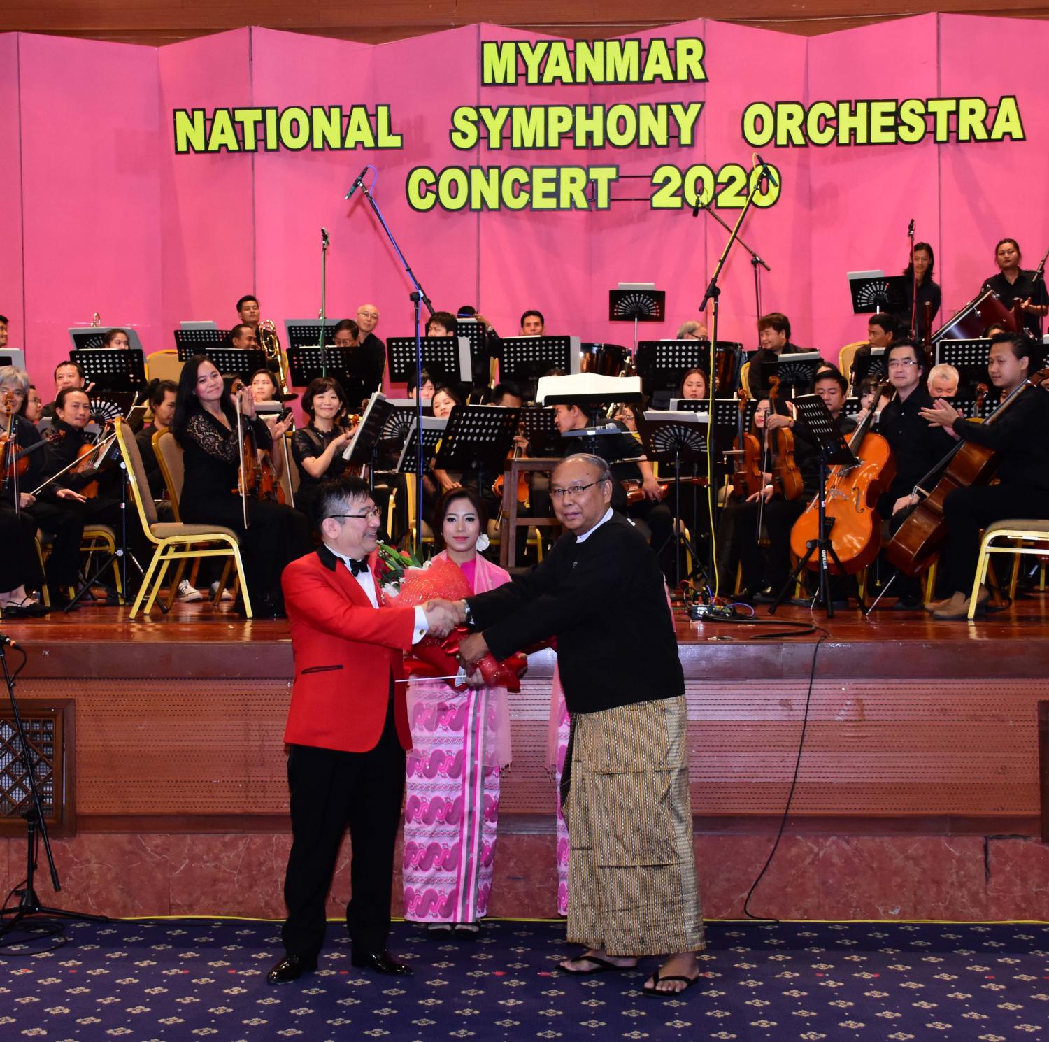 ပြန်ကြားရေးဝန်ကြီးဌာန မြန်မာ့အသံနှင့် ရုပ်မြင်သံကြား နိုင်ငံတော်သံစုံတီးဝိုင်းနှင့် ဂျပန်နိုင်ငံ မှ ဂီတစာဆို တီးဝိုင်းခေါင်းဆောင် Mr. Yunosuke Yamamoto (Conductor & Composer) ဦးဆောင်သော ဂျပန်အနုပညာရှင်များ ပူးပေါင်းဖျော်ဖြေ တင်ဆက်သည့် "Myanmar National Symphony Orchestra Concert 2020" ဖျော်ဖြေပွဲကို ယနေ့ညနေ ၆ နာရီခွဲတွင် နေပြည်တော် ရှိ မြန်မာအပြည်ပြည်ဆိုင်ရာ ကွန်ဗင်းရှင်းဗဟိုဌာန -၂ ၌ ကျင်းပရာ အမျိုးသားလွှတ်တော်ဥက္ကဋ္ဌ မန်းဝင်းခိုင်သန်းနှင့် ဇနီး နန့်ကြင်ကြည်တို့ တက်ရောက်အားပေးသည်။