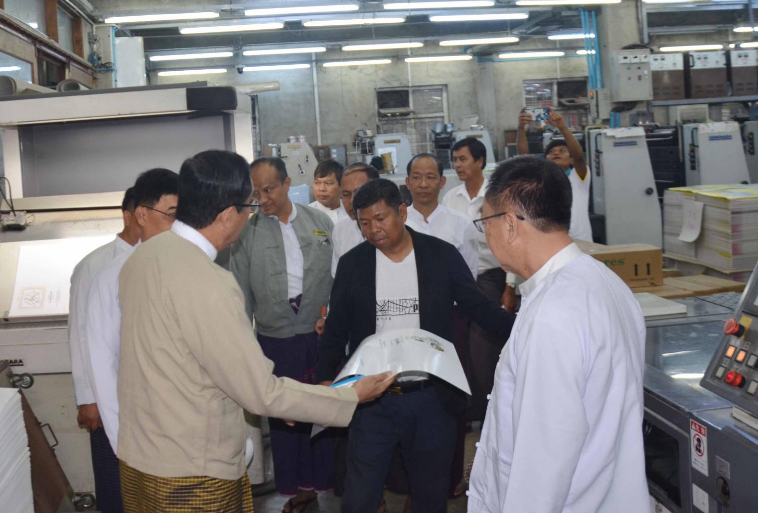 ရှေးဦးစွာ ဒုတိယဝန်ကြီးသည် ပုံနှိပ်ရေးနှင့် ထုတ်ဝေရေးဦးစီးဌာန  ညွှန်ကြားရေး မှူးချုပ် ဦးအောင်မျိုးမြင့်၊ မန္တလေး တိုင်းဒေသကြီး ပညာရေးမှူးရုံး လက်ထောက် ညွှန်ကြားရေးမှူး(စီမံ) ဦးကျော်ကျော်မွန်၊ မန္တလေးတိုင်းဒေသကြီး ပုံနှိပ်နှင့် ထုတ်ဝေသူ လုပ်ငန်းရှင်များအသင်းဥက္ကဋ္ဌ ဦးထွန်းထွန်းစိုးတို့နှင့်အတူ   ပြည်ကြီးတံခွန်မြို့နယ် ဖိုးရာဇာလမ်းရှိ ထိပ်တန်း ပုံနှိပ်လုပ်ငန်းနှင့် ပြည်ကြီးတံခွန်မြို့နယ် ရန်ကုန်-မန္တလေး ကားလမ်း၊ ဖိုးရာဇာလမ်းနှင့် ဧဝရတ်လမ်းကြားရှိ  ရတနာပုံ သတင်းစာတိုက် ကျောင်းသုံး ပုံနှိပ်လုပ်ငန်းသို့ သွားရောက်၍ လုပ်ငန်းပြီးစီးမှု အခြေ အနေများကို ကြည့်ရှုစစ်ဆေးသည်။