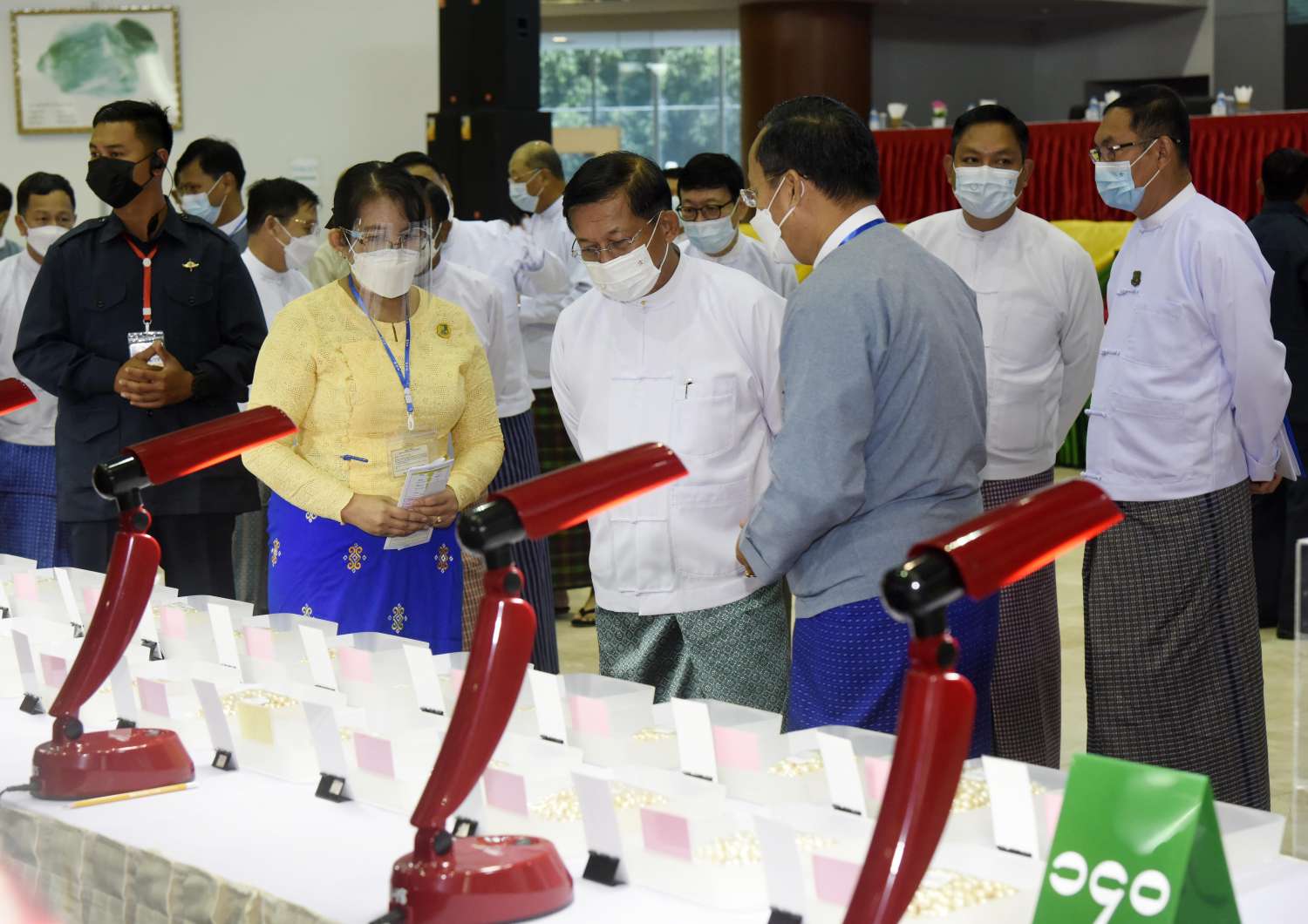 ၂၀၂၁ ခုနှစ်၊ ပုလဲအတွဲများနှင့် ကျောက်စိမ်းအတွဲများပြပွဲ (Mini Gems Emporium) အခမ်းအနားကို ယနေ့နံနက်ပိုင်းတွင် နေပြည်တော်ရှိ မဏိရတနာ ကျောက်စိမ်းခန်းမ၌ ကျင်းပပြုလုပ်ရာ နိုင်ငံတော်စီမံအုပ်ချုပ်ရေးကောင်စီဉက္ကဋ္ဌ၊ နိုင်ငံတော်ဝန်ကြီးချုပ် ဗိုလ်ချုပ်မှူးကြီး မင်းအောင်လှိုင် တက်ရောက်ချီးမြှင့်သည်။