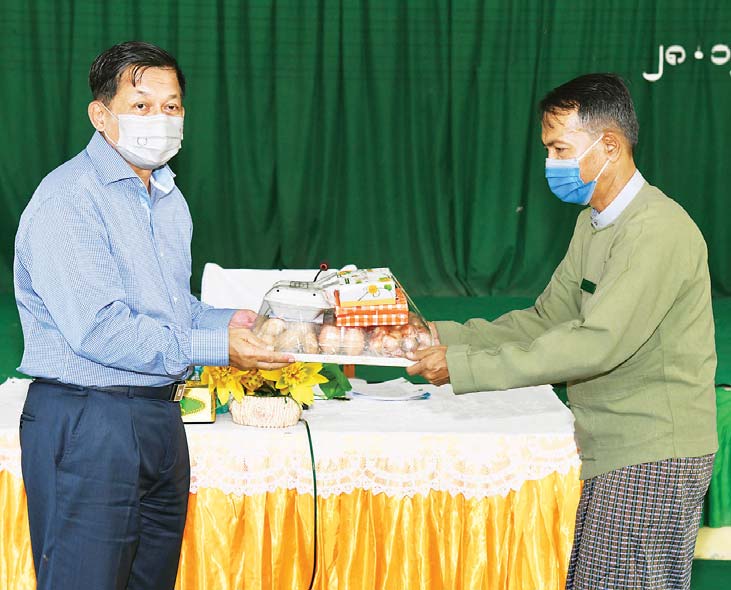 ထို့နောက် နိုင်ငံတော်စီမံအုပ်ချုပ်ရေးကောင်စီဥက္ကဋ္ဌ၊ နိုင်ငံတော် ဝန်ကြီးချုပ်က ကိုကိုးကျွန်း ဒေသအတွက် စားသောက်ဖွယ်ရာပစ္စည်းများနှင့် အားကစားပစ္စည်းများကို လည်းကောင်း၊ နိုင်ငံတော်စီမံအုပ်ချုပ်ရေးကောင်စီဝင် ဗိုလ်ချုပ်ကြီး တင်အောင်စန်းက ဆက်သွယ်ရေး Sim Card နှင့် ငွေဖြည့်ကတ်များကိုလည်းကောင်း၊ ကျန်းမာရေး ဝန်ကြီးဌာန ပြည်ထောင်စုဝန်ကြီး ဒေါက်တာ သက်ခိုင်ဝင်းက ECG စက်နှင့် ကိုဗစ်-၁၉ ရောဂါ ကာကွယ်ထိန်းချုပ်ကုသရေး ပစ္စည်းများကိုလည်းကောင်း ပေးအပ်ကြရာ မြို့နယ်အုပ်ချုပ်ရေးမှူးနှင့် တာဝန်ရှိသူများက လက်ခံရယူကြသည်။