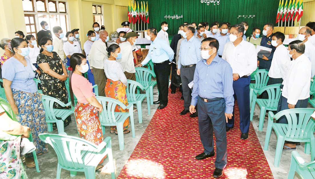 ရေ၊ မီး ရရှိမှုနှင့် ပတ်သက်၍ စနစ်ကျနစွာ သုံးစွဲရေး၊ အသုံးမှ အဖြုန်းသို့ မဖြစ်စေ ရေး၊ လမ်းများကောင်းမွန် စေရေး၊ ပတ်ဝန်းကျင် သန့်ရှင်းသာယာရေးနှင့် ပတ်သက်၍ တစ်ဦးချင်းအသိစိတ်ဖြင့် လုပ်ဆောင်ကြစေလိုကြောင်း၊ နိုင်ငံတော်အဆင့် လုပ်ဆောင် နေသည့် ပန်းခင်းစီမံချက် နှင့် ပတ်သက်၍ ရာနှုန်းပြည့်ပြီးစီးပြီ ဖြစ်သော်လည်း အချက် အလက်များမှန်ကန်မှု ရှိရန် အရေးကြီးမည်ဖြစ်ကြောင်း၊ လူဦးရေနည်းပါးသည့် မြို့နယ် ဖြစ်သဖြင့် စနစ်ကျန သည့် အုပ်ချုပ်မှုပုံစံဖြင့် ရှိရမည်ဖြစ်ပြီး အုပ်ချုပ်ရေးဆိုင်ရာ တာဝန် ရှိသူများအနေဖြင့် စိတ်ပါဝင်စားစွာဖြင့် လုပ်ဆောင်ကြစေလိုကြောင်း၊ ကိန်းဂဏန်း အချက်အလက် မှားယွင်းမှု များမဖြစ်စေရေး၊ မြို့နှင့်ပတ်သက်သည့် မှတ်တမ်းများ၊ သမိုင်းမှတ်တမ်း များကို စနစ်တကျပြုစုဆောင်ရွက်ခြင်းဖြင့် ခေတ်မီပြီးစည်းစနစ်ကျနသည့် မြို့တစ်ခု အဖြစ်ပုံဖော်တည်ဆောက်ကြရန်လိုကြောင်း၊ အချုပ် အားဖြင့် ပြောရ မည်ဆိုပါက ဒေသ၏ ဖွံ့ဖြိုးတိုးတက်ရေးအတွက် တိုက်ရိုက် ဖြေရှင်းဖြည့် ဆည်းပေး နိုင်ရေးဝန်ကြီးများကို တစ်ပါတည်းခေါ်ဆောင်လာခဲ့ခြင်း ဖြစ်ကြောင်း၊ မိမိဒေသ၏ ဖွံ့ဖြိုးတိုးတက်ရေး အတွက် ဒေသတွင် တာဝန်ကျသူများနှင့် နေထိုင်သူများဖြစ်သည့် တပ်မတော်၊ ဌာနဆိုင်ရာအဖွဲ့အစည်းများနှင့် ပြည်သူလူထုတို့ ပူးပေါင်းပြီး ဒေသတိုး တက်ရေးကို ဝိုင်းဝန်းပူးပေါင်းဆောင်ရွက်ကြရမည်ဖြစ်ကြောင်းနှင့် နိုင်ငံတော်အစိုးရနှင့် တပ်မတော် မှလည်း လိုအပ်သည်များကို ဖြည့်ဆည်းဆောင်ရွက်ပေးသွားမည်ဖြစ် ကြောင်း ပြောကြားသည်။