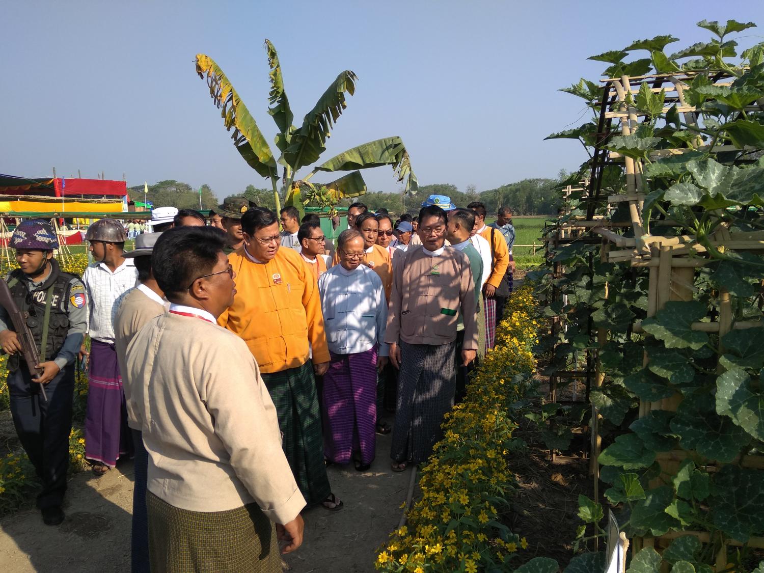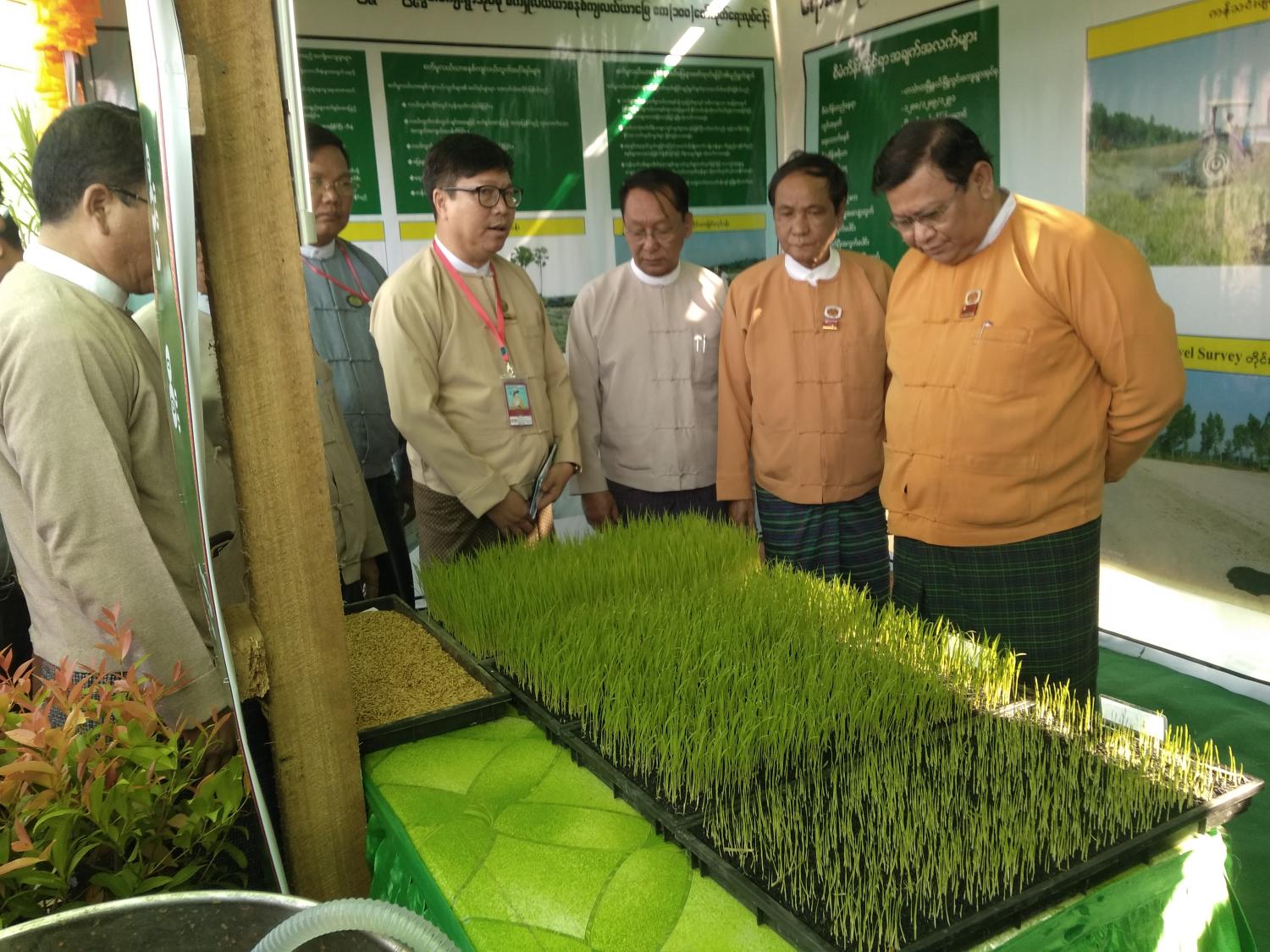 တောင်သူအသိပညာပေးပြကွက်များအဖြစ် လယ်ယာသုံးစက်ကိရိယာဖြင့် ထွန်ယက်ပြသခြင်း၊ ကောင်းကင်မျိုးစေ့ကြဲ ကိရိယာဖြင့် မျိုးစေ့ကြဲပက်ခြင်း၊ ကောင်းကင်ဆေးဖြန်းစက်ဖြင့် ဆေးဖြန်းပြသခြင်းတို့ကို လှည့်လည်ကြည့်ရှုကြသည်။