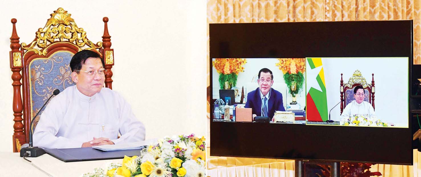 နိုင်ငံတော်စီမံအုပ်ချုပ်ရေးကောင်စီဥက္ကဋ္ဌ၊ နိုင်ငံတော်ဝန်ကြီးချုပ် ဗိုလ်ချုပ်မှူးကြီး မင်းအောင်လှိုင်သည် ကမ္ဘောဒီးယားနိုင်ငံဝန်ကြီးချုပ် Samdech Akka Moha Sena Padei Techo HUN SEN နှင့် ယနေ့မွန်းလွဲပိုင်းတွင် Video Conferencing ဖြင့် တွေ့ဆုံဆွေးနွေးသည်။