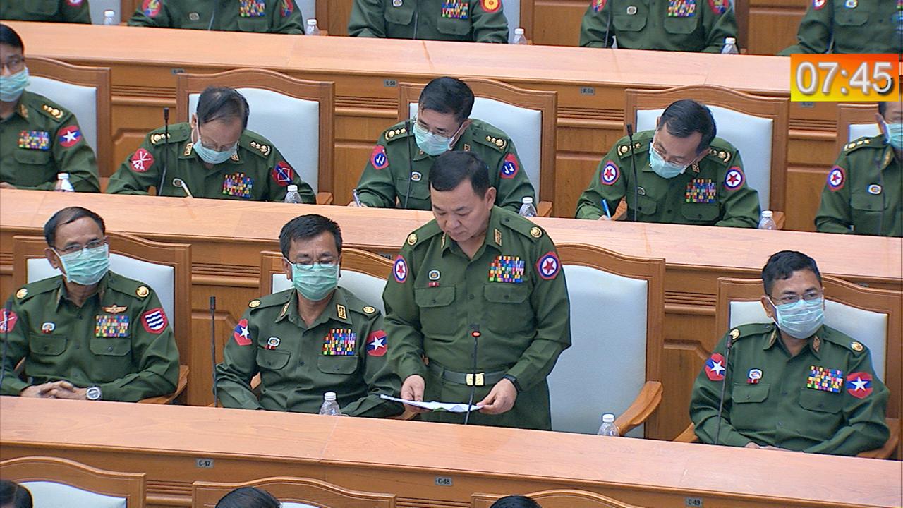 တနင်္သာရီတိုင်းဒေသကြီး မဲဆန္ဒနယ်အမှတ် (၇) မှ ဦးဇော်ဟိန်းက ပြင်ဆင်ချက် ပုဒ်မ ၁၀၉ ပုဒ်မခွဲ (ခ) နှင့် ပုဒ်မ ၁၄၁ ပုဒ်မခွဲ (ခ) ပြင်ဆင်ချက်တွင် တပ်မတော်ကာကွယ်ရေး ဦးစီးချုပ်က အမည်စာရင်း တင်သွင်းသော တပ်မတော်သားကိုယ်စားလှယ်များကို လွှတ်တော်သက်တမ်းအလိုက် အချိုးကျ လျှော့ချခြင်းသည်လည်း သင့်မြတ်ပါကြောင်း၊ ပြည်သူ့အသံ လွှတ်တော်အသံ၊ ပြည်သူ့ဆန္ဒ လွှတ်တော်ဆန္ဒ ဆိုသည့်အတိုင်း ယခုလက်ရှိ ဖွဲ့စည်းပုံအခြေခံဥပဒေအရ ပြည်သူအများ၏ဆန္ဒဖြင့် ရွေးကောက်ခံ လွှတ်တော်ကိုယ်စားလှယ်များသည် လွှတ်တော်တွင် ၇၅ ရာခိုင်နှုန်း ပင် ရှိပါကြောင်း၊ ထို့ကြောင့် လွှတ်တော်သက်တမ်းအလိုက် တပ်မတော်ကာကွယ်ရေး ဦးစီးချုပ်ကတင်ပြသည့် တပ်မတော်သားကိုယ်စားလှယ် အချိုးအစား ပါဝင်မှုပြင်ဆင်ခြင်းသည် သင့်လျော် သည့်အတွက် ထောက်ခံအပ်ပါကြောင်း ဆွေးနွေးသည်။