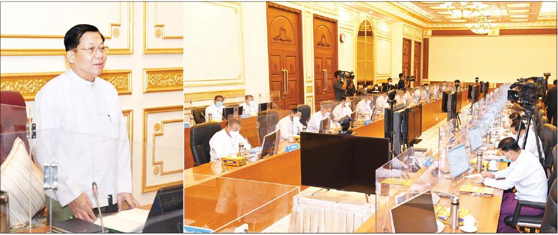 လက်ရှိခြေအနေတွင်  ထုတ်လုပ်မှု ကုန်ကျစရိတ်ကြီးမြင့်မှု၊ ပို့ဆောင်ရေးစရိတ် ကြီးမြင့်မှုနှင့် ကုန်ကြမ်းဈေးနှုန်းမြင့်မားမှုတို့ကြောင့် ကုန်ဈေးနှုန်းကြီးမြင့်မှုများ ဖြစ်ပေါ်လျက်ရှိကြောင်း၊ ကုန်ဈေးနှုန်း ကြီးမြင့်မှုကို ထိန်းချုပ်နိုင်ရန်အတွက် ဝန်ကြီးဌာနအလိုက် သက်ဆိုင်ရာတာဝန်ရှိသူများ အနေဖြင့် စဉ်းစားဆောင်ရွက်ကြရန် လိုကြောင်း၊ ကုန်ဈေးနှုန်းကြီးမြင့်မှု၏ အဓိကအချက်အားဖြင့် သယ်ယူပို့ဆောင်ရေး ကုန်ကျစရိတ်များပြားခြင်းကြောင့်ဖြစ်သဖြင့် အများပြည်သူ ပို့ဆောင်ရေးစနစ် ကောင်းမွန်အောင် ဆောင်ရွက်ပေးရန်လိုအပ်ကြောင်း၊ ယင်းစနစ် ကောင်းမွန်ရန် ဆောင်ရွက်ပေးခြင်း အားဖြင့် နိုင်ငံခြားငွေဖြင့် ဝယ်ယူသုံးစွဲနေရသည့် စက်သုံးဆီသုံးစွဲမှုကို ထိထိရောက်ရောက် လျှော့ချနိုင်မည်ဖြစ်ကြောင်း၊ ထို့ပြင် ပြည်တွင်း၌ ထုတ်လုပ်သည့် ကုန်ပစ္စည်းများအတွက် ကုန်ကြမ်းများ လုံလုံလောက်လောက် ရရှိနိုင်ရေးနှင့် ဈေးကွက်အတွင်း ဝယ်လိုအားကိုကာမိသည်အထိ တိုးမြှင့် ထုတ်လုပ်ပေးနိုင်ရန် လိုအပ်ကြောင်း၊ ပြည်တွင်းထုတ်လုပ်မှုကို အားပေးမှသာ ကုန်ဈေးနှုန်း ကျဆင်းလာမည် ဖြစ်ပြီး ငွေကြေးခိုင်မာမှု ရရှိလာမည်ဖြစ်ကြောင်း၊ ယင်းသို့ဆောင်ရွက်ခြင်းသည် တိုင်းပြည်၏ စီးပွားရေးကို အထောက်အကူဖြစ်စေပြီး အမျိုးသားအကျိုးစီးပွားကို ကာကွယ်ရာ ရောက်သည့်အတွက် ဝိုင်းဝန်းကြိုးပမ်း ဆောင်ရွက်သွားရန် တိုက်တွန်းပါကြောင်း၊ ဝန်ကြီးဌာနများ အနေဖြင့် ကျန်ရှိသည့် ဘတ်ဂျက်ကာလအတွင်း တိုင်းပြည် ဖွံ့ဖြိုးတိုးတက်ရေးအတွက် နည်းလမ်းပေါင်းစုံဖြင့် ဝိုင်းဝန်းကြိုးပမ်း ဆောင်ရွက်သွားကြရန် လိုကြောင်းဖြင့် မှာကြားခဲ့ကြောင်း သတင်းရရှိသည်။