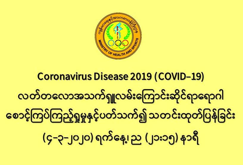 COVID-19ရောဂါစောင့်ကြပ်ကြည့်ရှုမှုနှင့်ပတ်သက်၍သတင်းထုတ်ပြန်ခြင်း