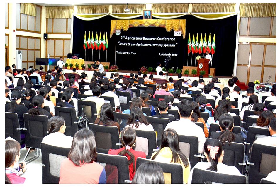 “ပိုမိုကောင်းမွန်သော သဘာဝပတ်ဝန်းကျင်ထိန်းသိမ်းရေး စိုက်ပျိုးရေးစနစ်” (Smart Green Agricultural Farming System) ခေါင်းစဉ်ဖြင့် ယနေ့ကျင်းပပြုလုပ်သည့် ဒုတိယ အကြိမ် သုတေသနစာတမ်းဖတ်ပွဲတွင် စပါး၊ ပြောင်းနှင့် အခြား နှံစားသီးနှံဆိုင်ရာ စာတမ်း (၂၁)စောင်၊ ဆီထွက်သီးနှံနှင့် ပဲမျိုးစုံသီးနှံဆိုင်ရာ (၁၄)စောင်၊ ဟင်းသီးဟင်းရွက်နှင့် သစ်သီး ဝလံနှင့်ပတ်သက် သည့် စာတမ်း(၉)စောင်၊ စက်မှုကုန်ကြမ်းသီးနှံ ဆိုင်ရာ (၂)စောင်၊ မြေဆီလွှာ၊ စိုက်ပျိုးရေနှင့် ပတ်သက်သည့် စာတမ်း(၉)စောင်၊ ပိုးမွှားရောဂါ ကာကွယ်နှိမ်နင်းခြင်းဆိုင်ရာ စာတမ်း(၇)စောင်၊ အပင်ဗီဇအရင်းအမြစ်ဆိုင်ရာ စာတမ်း(၁)စောင်၊ စက်မှုလယ်ယာနှင့် ပတ်သက်သည့် စာတမ်း(၂)စောင်၊ လူမှုစီးပွားရေးဆိုင်ရာ စာတမ်း(၁)စောင် စုစုပေါင်း စာတမ်း(၆၆)စောင်တို့အား တင်သွင်းဖတ်ကြား ကြမည်ဖြစ်ကြောင်း သိရသည်။