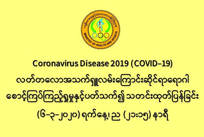 COVID-19 ရောဂါ စောင့်ကြပ်ကြည့်ရှုမှုနှင့်ပတ်သက်၍ သတင်းထုတ်ပြန်ခြင်း