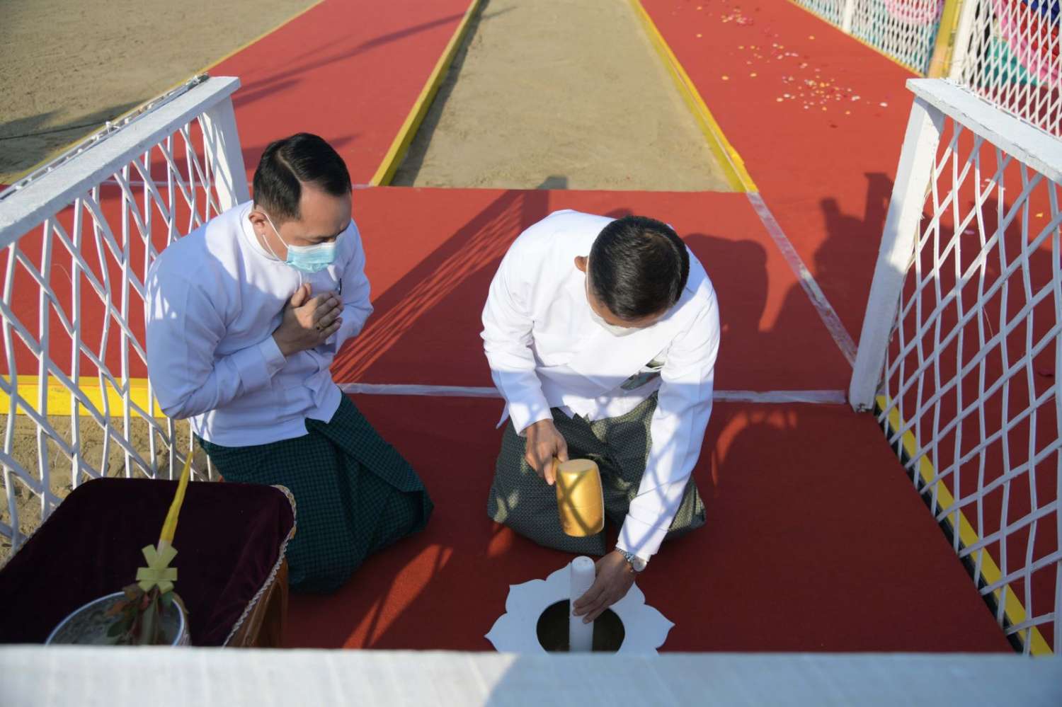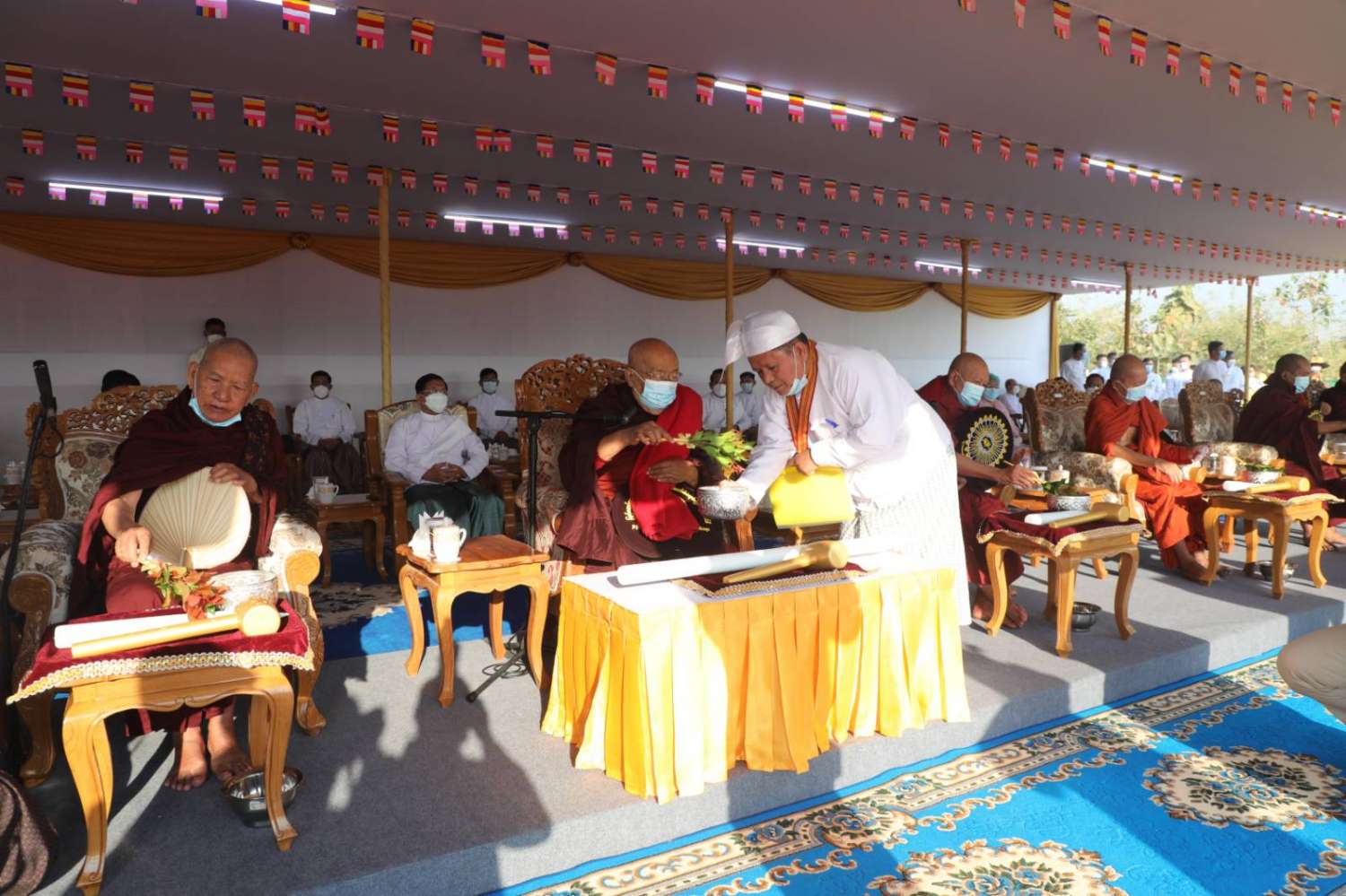 ဦးစွာ အခမ်းအနားကို နမောတဿသုံးကြိမ်ရွတ်ဆို ဘုရားကန်တော့ဖွင့်လှစ်ပြီး ဆရာတော်ကြီးများက မေတ္တာပို့ဂါထာတော်များ ရွတ်ဆိုပူဇော်ကြသည်။ ထို့နောက် နိုင်ငံတော်စီမံအုပ်ချုပ်ရေးကောင်စီဥက္ကဋ္ဌ နိုင်ငံတော်ဝန်ကြီးချုပ်နှင့် အခမ်းအနားတက်ရောက် လာကြသူများက ရတနတ္တယပူဇာဂါထာတော်နှင့် မေတ္တာပို့ လင်္ကာနှစ်ပိုဒ်ကို သံပြိုင်ညီညာ သုံးကြိမ်ရွတ်ဆိုပွားများပူဇော်ကြသည်။