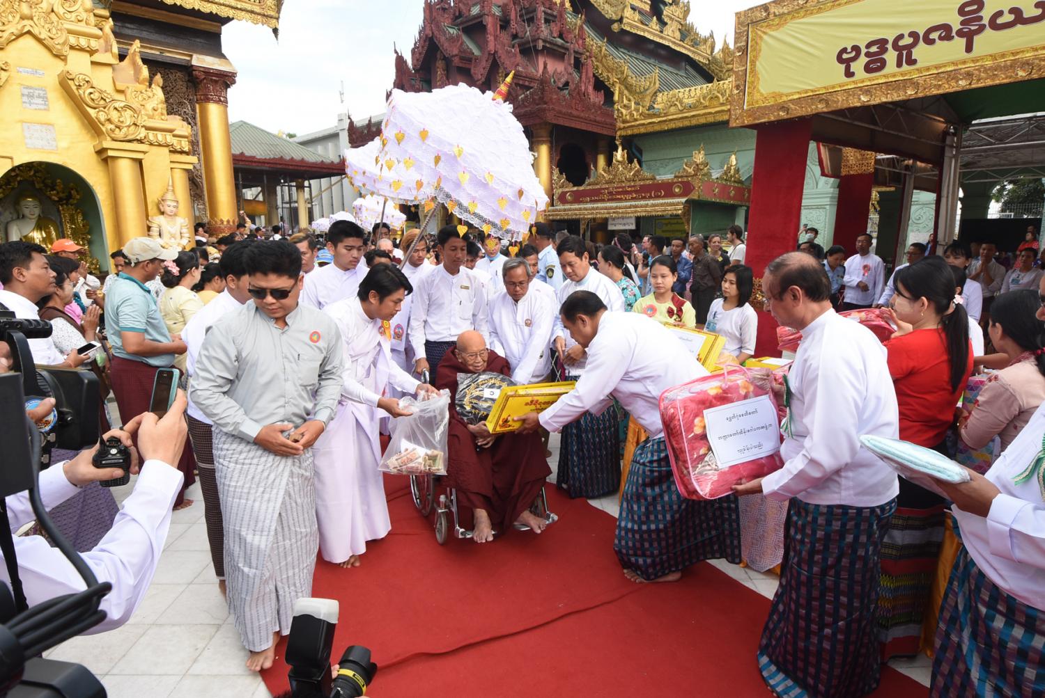 သံဃာ့ပူဇာအနေဖြင့် ရွှေတိဂုံစေတီတော် ဩဝါဒါစရိယ ဆရာတော် ကြီးများ အမှူးပြုသော သံဃာ ၁၁၇ ပါးနှင့် သီလရှင် ၂၇ ပါး စုစုပေါင်း ၁၄၄ ပါးတို့အား ပင့်ဖိတ်၍ ရွှေတိဂုံစေတီတော် ရင်ပြင်တစ်ပတ် ဆွမ်းဆန်စိမ်း လောင်းလှူခြင်း အခမ်းအနားကို ယနေ့ ညနေ ၄ နာရီတွင်ကျင်းပရာ ရွှေတိဂုံစေတီတော် ဘဏ္ဍာတော်ထိန်းဂေါပကအဖွဲ့ဝင်များ၊ ဘာသာရေး ဝတ်အသင်းအဖွဲ့များ၊ ဝန်ထမ်းများနှင့် စေတနာရှင်၊ သဒ္ဓါတရား ထက်သန် ကြသည့် အလှူရှင်များက ဆွမ်းဆန် စိမ်းနှင့်လှူဖွယ်ပစ္စည်းများ လောင်းလှူ ကြသည်။