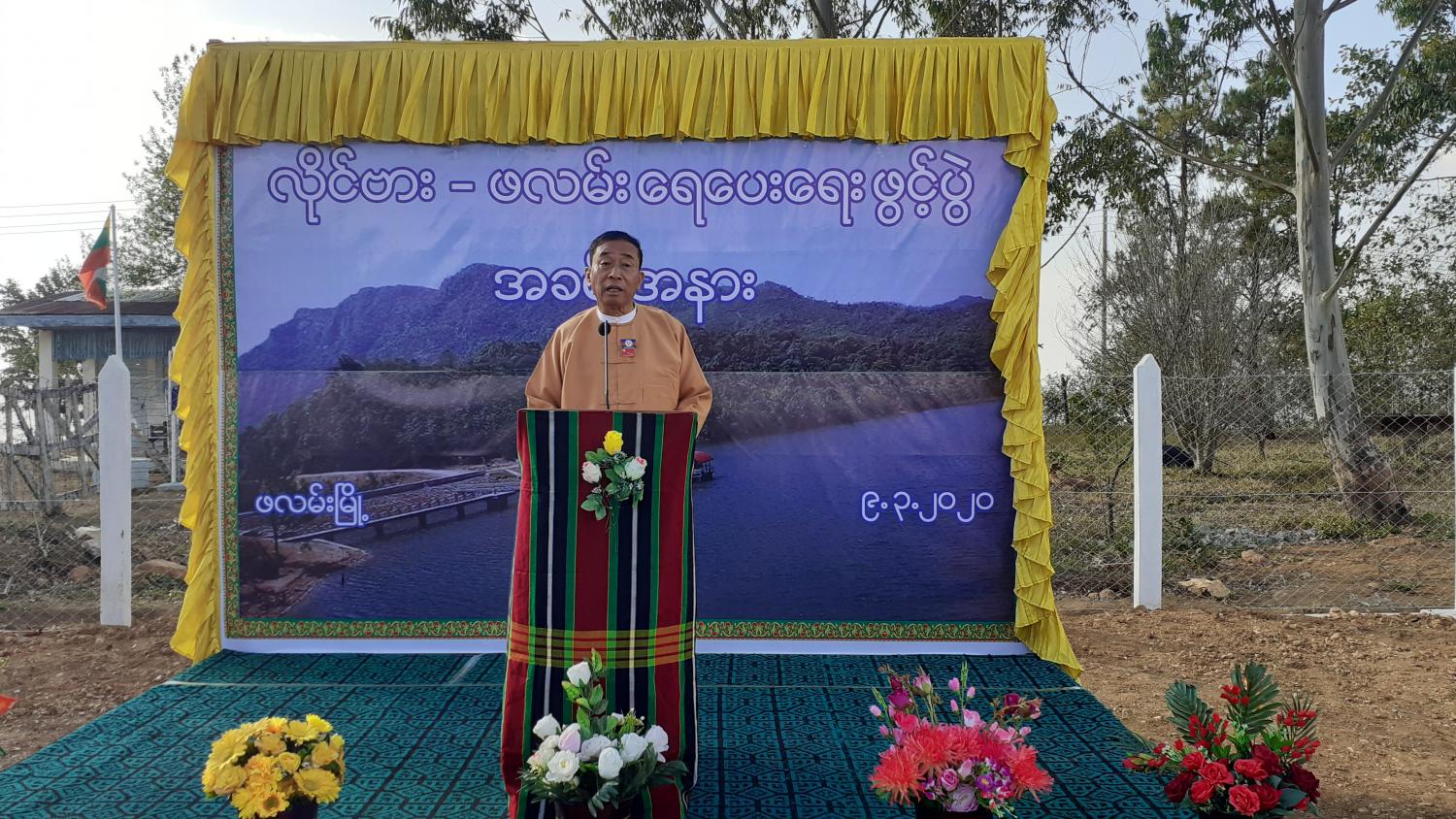 ပြည်ထောင်စုသီးသန့်ရန်ပုံငွေ ကျပ်သန်း(၅၀၀၀)ဖြင့် Authentic Construction Company Ltd. က ဆောင်ရွက်သော လိုင်ဗားဆည်မှ ဖလမ်းမြို့သို့ ရေပေးဝေရေး ဖွင့်ပွဲအခမ်းအနားကို ယနေ့ နံနက် ၈နာရီက ဖလမ်းမြို့၊ ကျင်မွာလ်ရပ်ကွက်၊ မြန်မာ့ဆက်သွယ်ရေး ရုံးအနီးရှိ အမှတ်(၄) ဂါလံ(၁)သိန်းဆံ့ ရေလှောင် ကန်ရှေ့ ၌ ပြုလုပ်သည်။