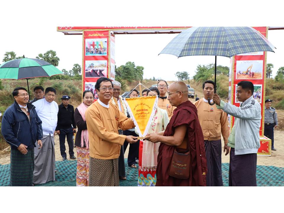 မိမိတို့ တိုင်းဒေသကြီးအစိုးရအဖွဲ့အနေဖြင့်လည်း ငါးကင်း-ကံသုံးဆင့်-ကျောက္ကာ(တ) လမ်းပိုင်းများ ဖြစ်သည့် မုံရွာမြို့နယ်အပိုင်းတွင် ၂၀၁၆-၂၀၁၇ ဘဏ္ဍာနှစ်၌ Box Culvert (၁)စင်း၊ ကျောက်ရိုးစီ ကွန်ကရစ်တံတား(၂)စင်း၊ ကုန်ကျငွေကျပ် (၃၈ ဒသမ ဝဝ)သန်း နှင့် ၂၀၁၈-၂၀၁၉ ဘဏ္ဍာနှစ်၌ ကျောက်လမ်း (၂/၂ဒသမ၇)မိုင်ကို ကုန်ကျငွေ ကျပ်(၁၄၆ ဒသမ ၆၀) သန်းဖြင့် လည်းကောင်း၊ အရာတော်မြို့နယ် အပိုင်းတွင် ၂၀၁၈-၂၀၁၉ ဘဏ္ဍာနှစ်၌ ဂျင်းလမ်း(၀/၆)မိုင်၊ ကုန်ကျငွေကျပ်(၂၇)သန်း၊ ကျောက်လမ်း(၁)ဖာလုံ၊ ကုန်ကျငွေကျပ်(၆ ဒသမ ၆၀၀)သန်းဖြင့် လည်ကောင်း၊ မြင်းမူမြို့နယ် အပိုင်းတွင် ၂၀၁၈-၂၀၁၉ ဘဏ္ဍာနှစ်၌ လွှတ်တော်ရန်ပုံငွေဖြင့် ကွန်ကရစ်လမ်း(၀/၂ ဒသမ ၅)မိုင်၊ ဂျင်းလမ်း (၀/၄ ဒသမ ၅) မိုင် နှင့် Box Culvert (၁)စင်း ကုန်ကျငွေကျပ် (၄)သန်းဖြင့် လည်းကောင်း ဆောင်ရွက်ပေးခဲ့ပြီး ဖြစ်ကြောင်း၊ မိမိတို့တိုင်းဒေသကြီးအတွင်း ကျေးလက်လမ်းတံတားများ ကောင်းမွန်ရေးအတွက် စိတ်အားထက်သန်စွာနဲ့ ပါဝင်ဆောင်ရွက်ခဲ့တဲ့ ဓမ္မစေတီဆရာတော်၊ အလှူရှင်များ နှင့် ကျေးရွာပြည်သူများအား အထူးကျေးဇူးတင်ရှိကြောင်းနှင့် ကျေးရွာနေ ပြည်သူများမှ လမ်း၊ တံတားများ ရေရှည်တည်တံ့အောင် ဝိုင်းဝန်းထိန်းသိမ်း ဆောင်ရွက်ပေးကြဖို့” တိုက်တွန်းကြောင်း ပြောကြားခဲ့သည်။