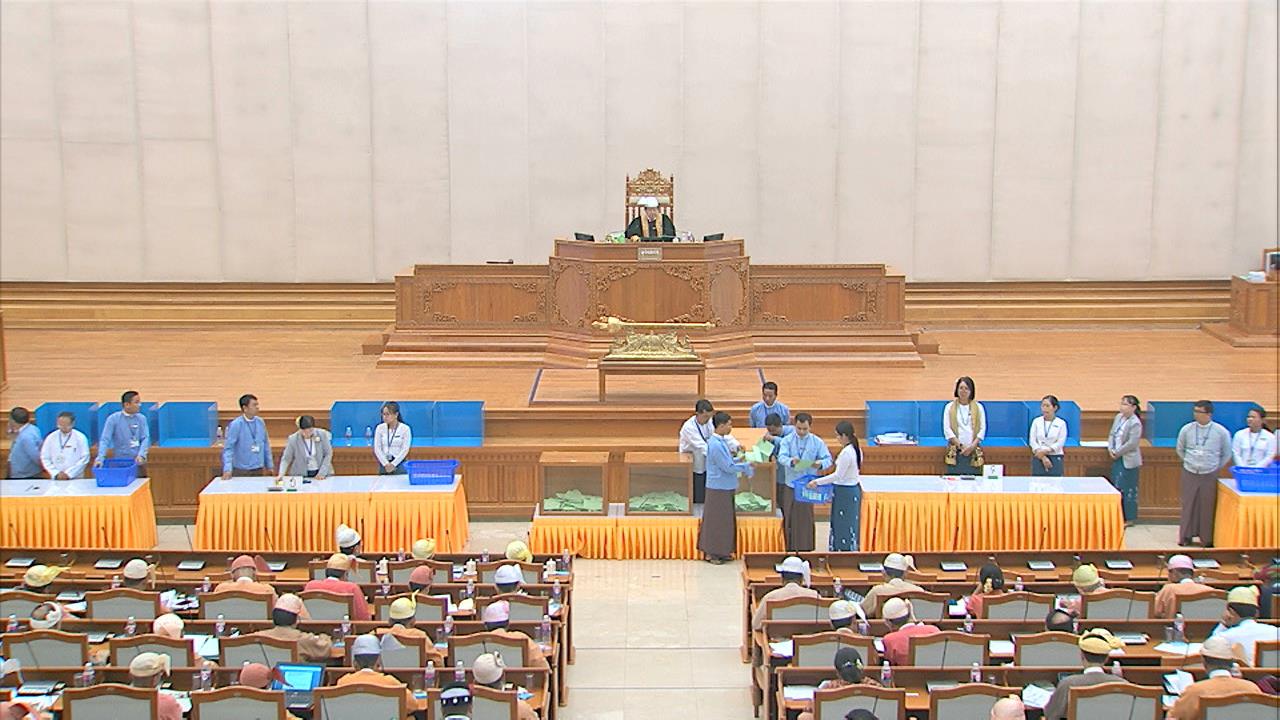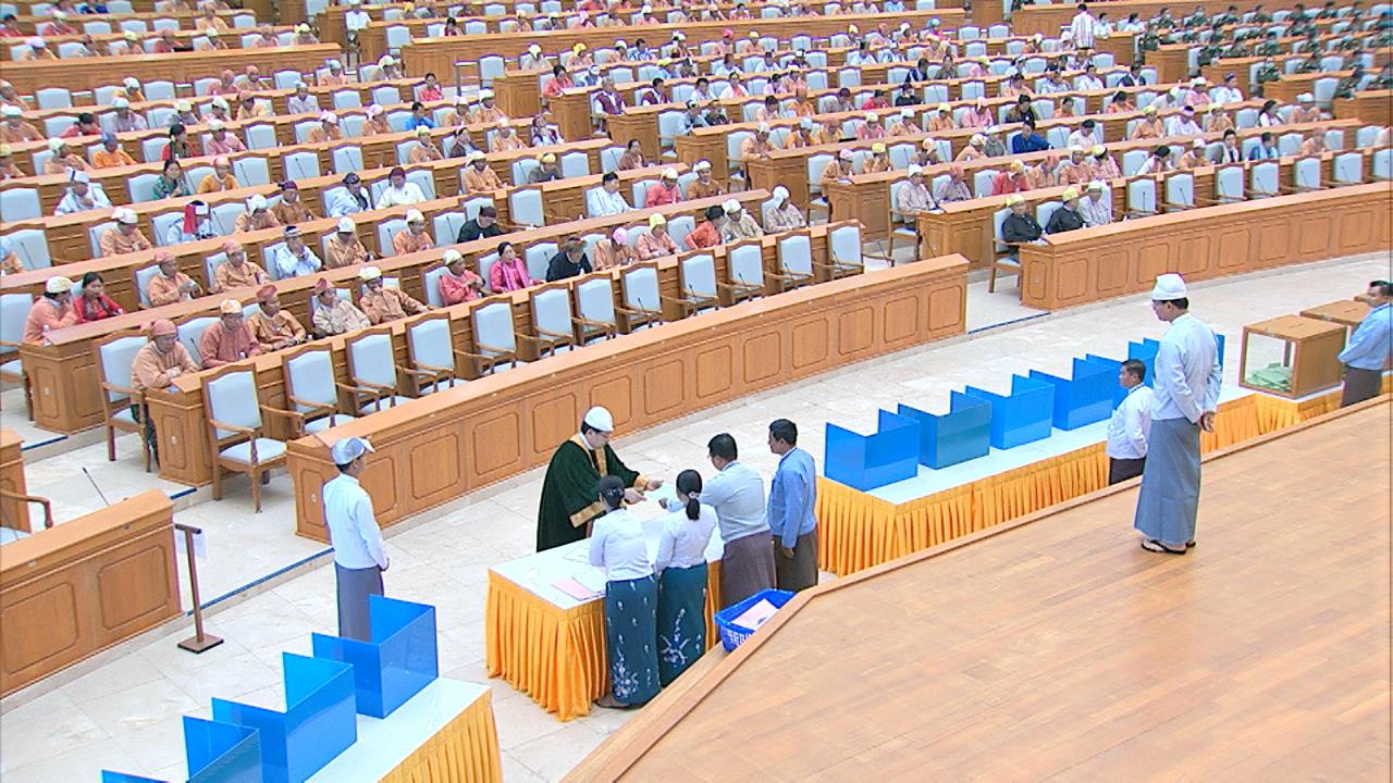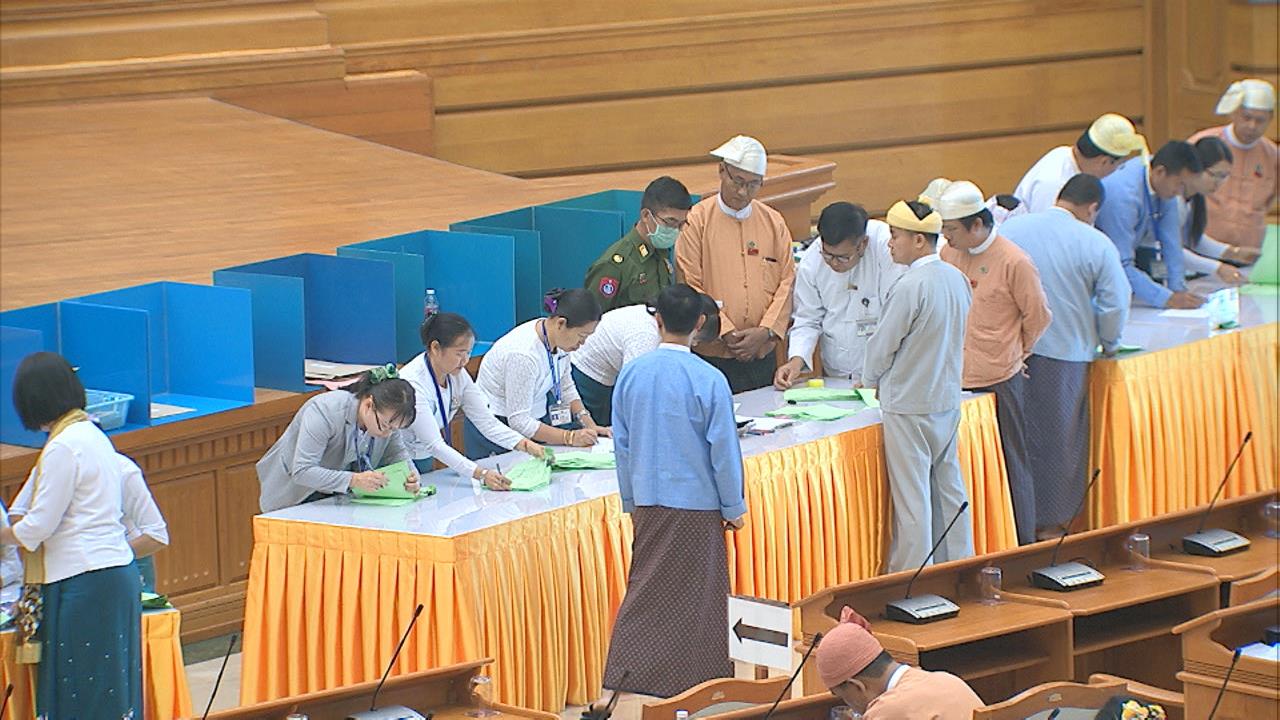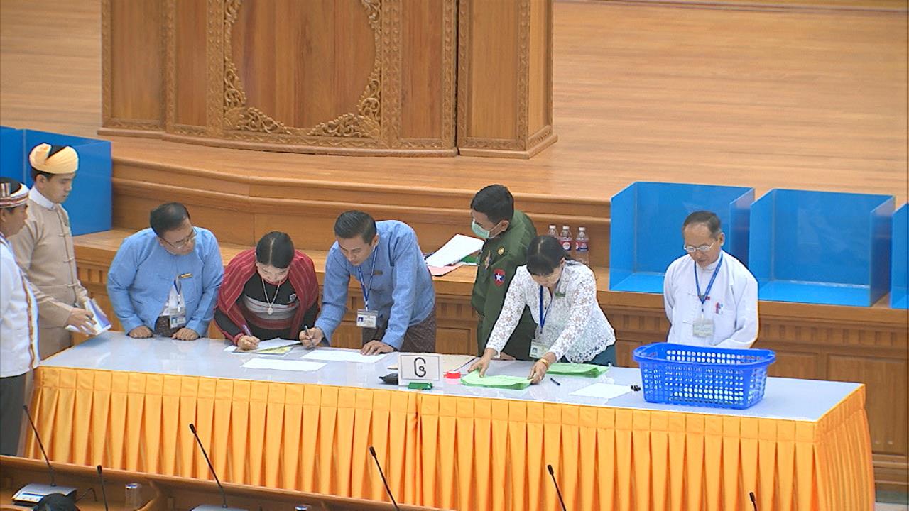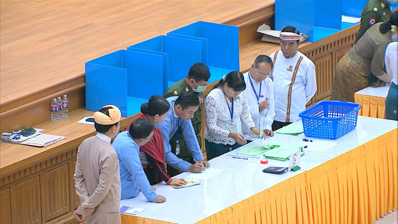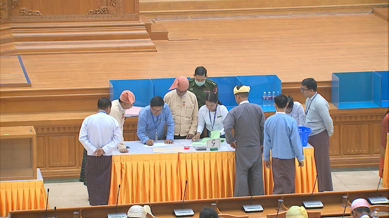 ယင်းနောက် အမျိုးသားလွှတ်တော် ဥက္ကဋ္ဌ မန်းဝင်းခိုင်သန်း၊ ပြည်ထောင်စုလွှတ် တော် ဒုတိယနာယက ဦးထွန်းအောင် (ခ) ဦးထွန်းထွန်းဟိန်၊ အမျိုးသားလွှတ်တော် ဒုတိယဥက္ကဋ္ဌ ဦးအေးသာအောင်နှင့် ပြည်ထောင်စုလွှတ်တော် ကိုယ်စားလှယ်များက သတ်မှတ်နေရာတွင် လျှို့ဝှက်ဆန္ဒပြုခြင်း နည်းလမ်းဖြင့် ဆန္ဒမဲပေးကြသည်။