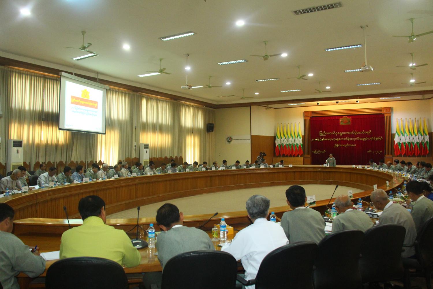 ၂၀၂၀ ပြည့်နှစ် အထွေထွေရွေးကောက်ပွဲအတွက် ပြည်ထောင်စုရွေးကောက်ပွဲ ကော်မရှင်နှင့် တိုင်းဒေသကြီး၊ ပြည်နယ်နှင့် ပြည်ထောင်စုနယ်မြေ ရွေးကောက်ပွဲ ကော်မရှင်အဖွဲ့ခွဲများ၏ မဲဆန္ဒရှင်စာရင်းပြုစုခြင်းဆိုင်ရာ ညှိနှိုင်းအစည်းအဝေးကို ယနေ့နံနက် ၉ နာရီခွဲ တွင် နေပြည်တော်ရှိ ပြည်ထောင်စု ရွေးကောက်ပွဲ ကော်မရှင်ရုံး အစည်းအဝေးခန်းမ၌ ကျင်းပသည်။