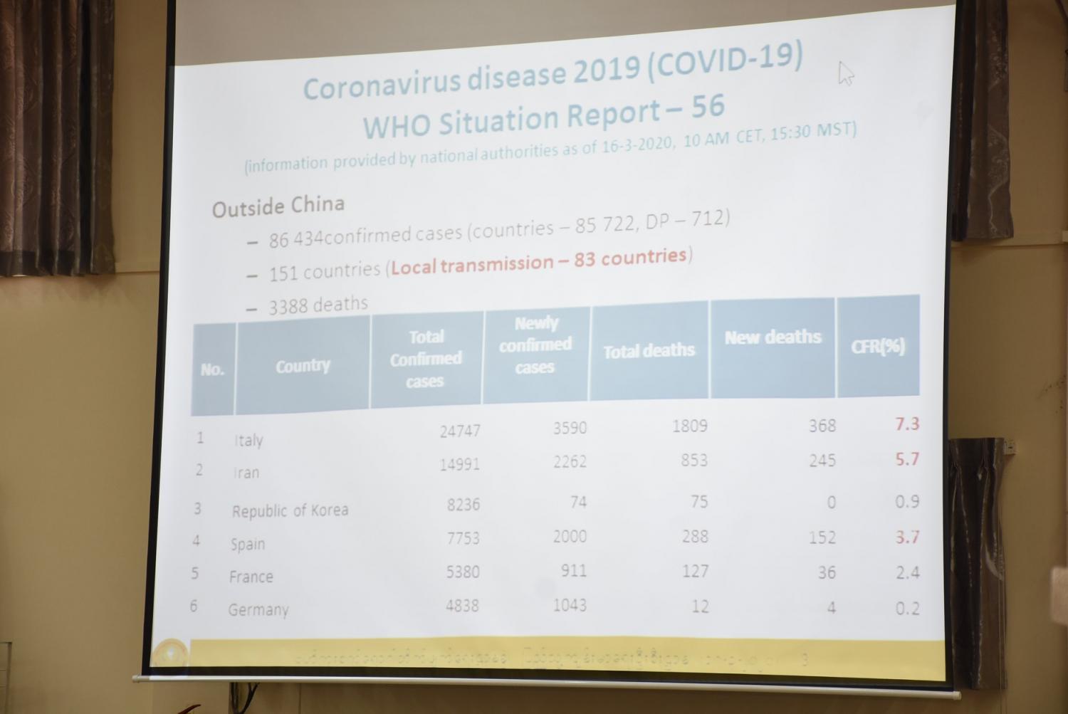 • ကမ္ဘာအရပ်ရပ်ရှိ COVID-19 ရောဂါဖြစ်ပွားသောနိုင်ငံများ၌ ရောဂါကာကွယ်ထိန်းချုပ်သည့် လုပ်ငန်း နည်းဗျူဟာများကို သုံးသပ်ကြည့်ရာ ၎င်းနိုင်ငံများ၌ လေယာဉ်ခရီးစဉ်များ ပိတ်ပင်ခြင်း၊ လျှော့ချခြင်း၊ မြို့များ၌ အဝင်၊ အထွက် ပိတ်ပင်ခြင်း၊ ကျောင်းများ ပိတ်ပင်ခြင်း၊ မရှိမဖြစ်ဆိုင်များမှလွဲ၍ အခြားဆိုင်များ ပိတ်ပင်ခြင်းနှင့် လူစုလူဝေးများ မလုပ်ရန် ပိတ်ပင်ခြင်းတို့ကိုလည်းကောင်း၊ ကုလသမဂ္ဂ အဖွဲ့အစည်းများနှင့် သက်ဆိုင်ရာနိုင်ငံတစ်ခုမှ ဦးစီးကျင်းပသည့် နိုင်ငံတကာမှ ကိုယ်စားလှယ်များစွာ တက်ရောက်မည့် အစည်းအဝေးများ၊ ညီလာခံများ ပိတ်ပင်ခြင်းများကို လည်းကောင်း ပြတ်ပြတ် သားသား လုပ်ဆောင်နေသည်များကို တွေ့ရှိရပါကြောင်း၊ မိမိတို့နိုင်ငံအနေဖြင့်လည်း ဖြစ်ပေါ်လာမည့် အခြေအနေပေါ် မူတည်၍ လိုအပ်လျှင် လိုအပ်သလိုဆောင်ရွက်နိုင်ရန်အတွက် ဝန်ကြီးဌာနမှ ဗဟိုကော်မတီသို့ အကြံပြုတင်ပြဆောင်ရွက်မည် ဖြစ်ပါကြောင်း၊