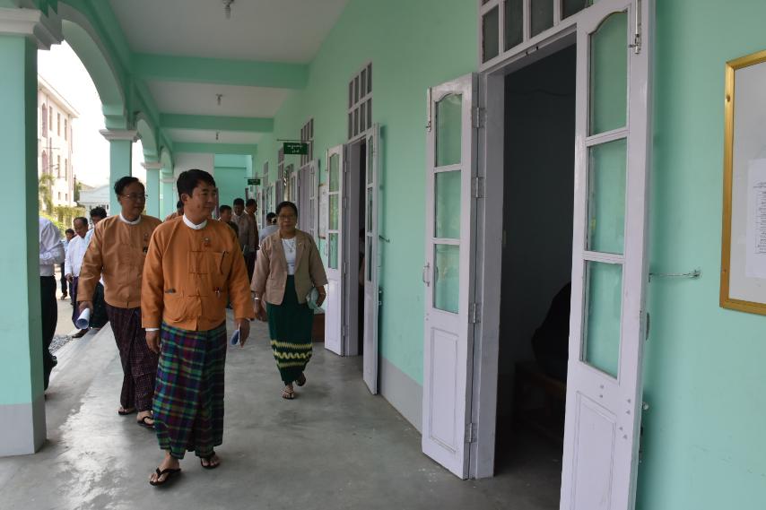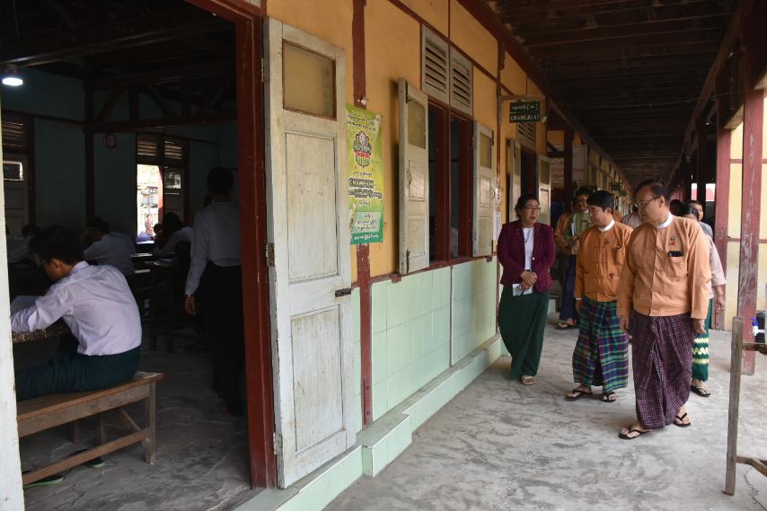 တက္ကသိုလ်ဝင်တန်းစာမေးပွဲ ဝင်ရောက် ဖြေဆိုနေသော ကျောင်းသား၊ ကျောင်းသူများအား မန္တလေးတိုင်းဒေသကြီးအစိုးရအဖွဲ့ဝင် ခေတ္တဝန်ကြီးချုပ် ဦးဇာနည်အောင်နှင့်အဖွဲ့ လှည့်လည် ကြည့်ရှုအားပေး