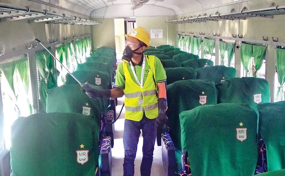 “ရန်ကုန်တိုင်းဒေသကြီးအစိုးရရဲ့ သယ်ယူပို့ဆောင် ရေးကဏ္ဍအနေနဲ့ လက်ကမ်းစာစောင်တွေ၊ ပိုစတာတွေ ကပ်တယ်။ အင်းစိန်မှာ မြန်မာ့မီးရထားဆရာဝန်ကြီးနဲ့ ပူးပေါင်းပြီး လိုအပ်တဲ့ ကျန်းမာရေးအသိပေးမှုတွေ လုပ်နေပါတယ်။ ဌာနရဲ့ ပံ့ပိုးမှုနဲ့ ကိုယ်ပူချိန်တိုင်းစက်တွေနဲ့ ဘူတာ ထဲဝင်လာတဲ့ ခရီးသည်တွေကို တိုင်းတာပေးတယ်။ ရထား တွဲဆိုင်း တွေမှာ ပိုးသတ်ဆေး၊ ကြွက်၊ ခြင်၊ ယင်၊ ပိုးဟပ်၊ ကြမ်းပိုးကင်းစင်ရေး ပိုးသတ်ဆေးဖျန်းတာ တွေကို ကုမ္ပဏီကိုအပ်ပြီး လုပ်ဆောင်နေပါတယ်” ဟု ဒု-လက်ထောက် ကြီးကြပ် ရေးမှူး ဦးအောင်ကျော်ဦးက ပြောသည်။