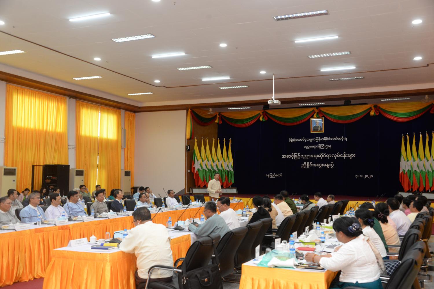 ပညာရေးဝန်ကြီးဌာန အဆင့်မြင့်ပညာရေးဆိုင်ရာ လုပ်ငန်းများ ညှိနှိုင်းဆွေးနွေးပွဲ အခမ်းအနားကို ယနေ့ မွန်းလွဲ ၁ နာရီတွင် နေပြည်တော်ရှိ ပညာရေးဝန်ကြီးဌာန အစည်း အဝေးခန်းမ၌ ကျင်းပသည်။