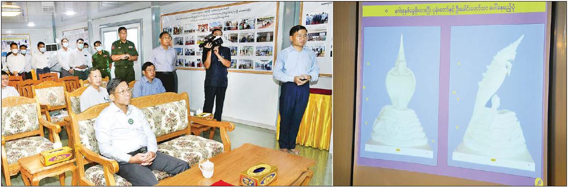 ယင်းနောက် နိုင်ငံတော်စီမံအုပ်ချုပ်ရေးကောင်စီဥက္ကဋ္ဌ နိုင်ငံတော်ဝန်ကြီးချုပ်နှင့် အဖွဲ့ဝင်များသည် မာရဝိဇယဗုဒ္ဓ ရုပ်ပွားတော်မြတ်ကြီး တည်ထားကိုးကွယ်ရန် ပလ္လင်တော် အကြမ်းထည် တည်ဆောက်ပြီးစီးမှု၊ ကျောက်စာချပ်များကို ခေတ်မီစက်ကိရိယာဖြင့် ထွင်းထုနေမှု၊ ရတနာပုံခေတ်ဟန် မင်္ဂလာတံတားတည်ဆောက်ပြီးစီးမှု၊ ချောင်းဖြောင့်မြေထိန်းနံရံ တည်ဆောက်ခြင်းလုပ်ငန်းများ ဆောင်ရွက်ပြီးစီးမှု၊ သုဓမ္မာဇရပ်များ တည်ဆောက်ပြီးစီးမှု၊ မုစလိန္ဒာအိုင်နှင့် ကျောက်စာရုံများ တည်ဆောက်နေမှု အခြေအနေများကို လှည့်လည်ကြည့်ရှု စစ်ဆေးပြီး တာဝန်ရှိသူများ၏ တင်ပြချက်များကို နိုင်ငံတော်ဝန်ကြီးချုပ်က လိုအပ်သည်များ လမ်းညွှန်မှာကြားသည်။