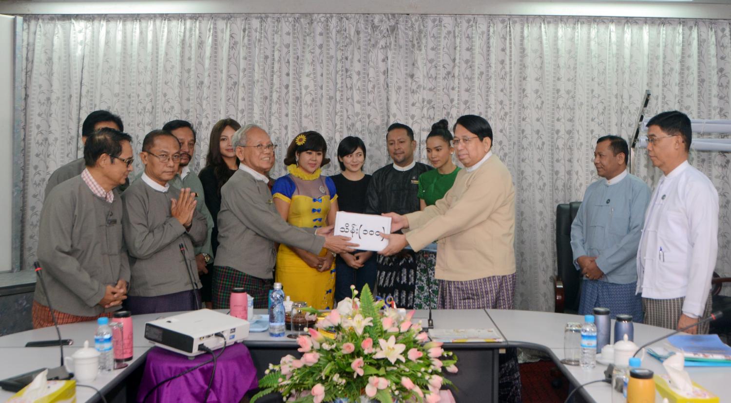 ထို့နောက် COVID-19 ရောဂါကာကွယ်ထိန်းချုပ်ကုသရေးအတွက် မြန်မာနိုင်ငံ ရုပ်ရှင်အစည်းအရုံးက အလှူငွေကျပ်သိန်း ၁၀၀၊ Forever Group က အလှူငွေ ကျပ်သိန်း ၂၀၀ တို့ကို ပေးအပ်လှူဒါန်းကြရာ ပြည်ထောင်စုဝန်ကြီးက လက်ခံရယူသည်။