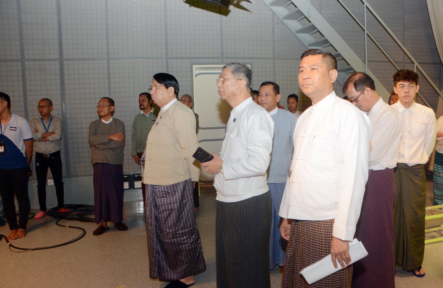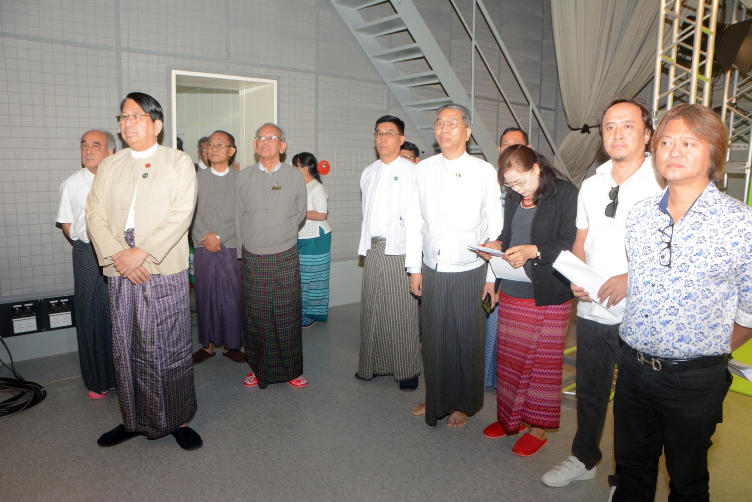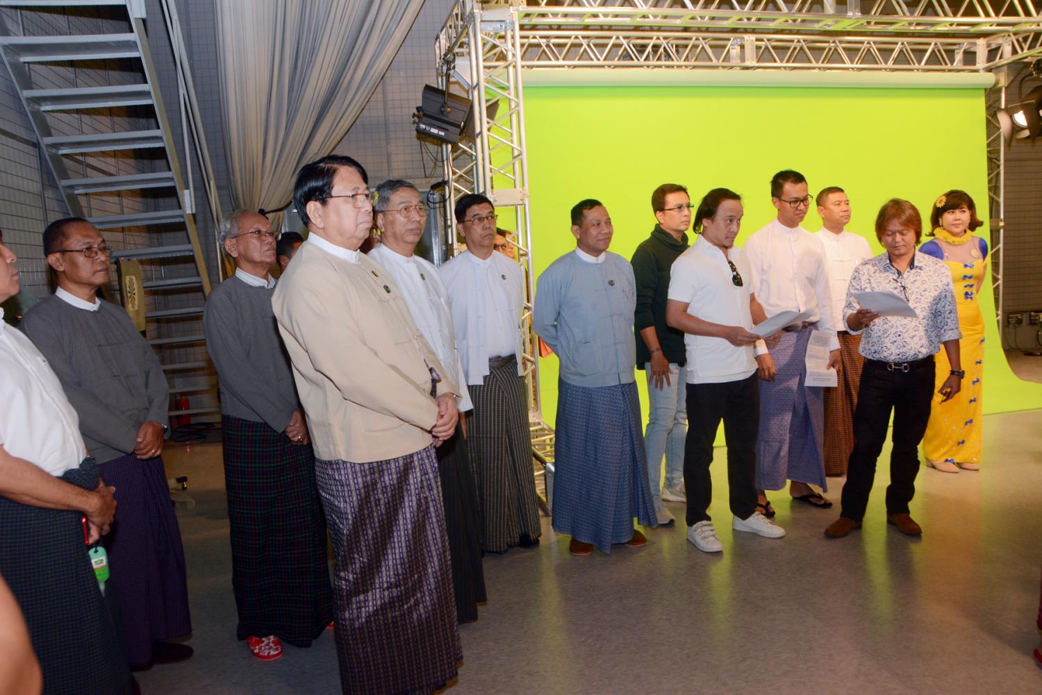ယင်းနောက် ပြည်ထောင်စုဝန်ကြီးသည် မြန်မာ့အသံနှင့် ရုပ်မြင်သံကြားစတူဒီယို - ၁ တွင် Public Service Announcement for COVID-19 အသိပညာပေး နှိုးဆော်ရေးအစီအစဉ် ရိုက်ကူးနေမှုကို ကြည့်ရှုအားပေးပြီး ယင်းအစီအစဉ်တွင် ပါဝင်ရိုက်ကူးနေသည့် ရုပ်ရှင်၊ ဂီတနှင့် MRTV-4 မှ အနုပညာရှင်များအား ရင်းရင်းနှီးနှီးနှုတ်ဆက်သည်။