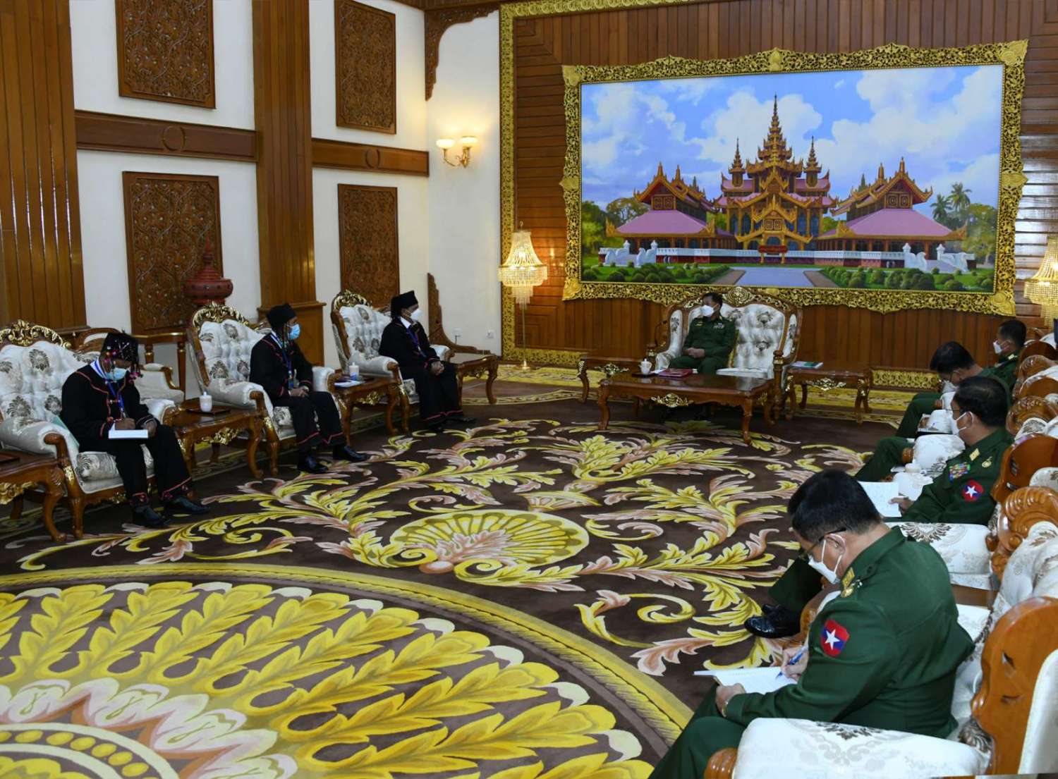 နိုင်ငံတော်စီမံအုပ်ချုပ်ရေးကောင်စီဥက္ကဋ္ဌ တပ်မတော်ကာကွယ်ရေးဦးစီးချုပ် ဗိုလ်ချုပ်မှူးကြီးမင်းအောင်လှိုင်သည် လားဟူဒီမိုကရက်တစ်အစည်းအရုံး(LDU)မှ အထွေထွေအတွင်းရေးမှူး ကျာဆော်လမွန် ဦးဆောင်သည့် ငြိမ်းချမ်းရေးကိုယ်စားလှယ်အဖွဲ့အား ယနေ့မွန်းလွဲပိုင်းတွင် နေပြည်တော်ရှိ ဘုရင့်နောင်ရိပ်သာ ဧည့်ခန်းမဆောင်၌ တွေ့ဆုံ၍ ငြိမ်းချမ်းရေးဆိုင်ရာကိစ္စရပ်များ ဆွေးနွေးသည်။